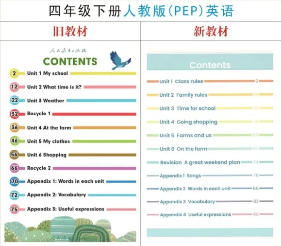 同三年级的“小修小补”不同,四年级下册的改动堪称“大刀阔斧”,无论是单元结构、词汇量还是能力要求,都有显著提升。这正是新课标背景下,教材更注重培养孩子综合语言运用能力和思维能力的体现!