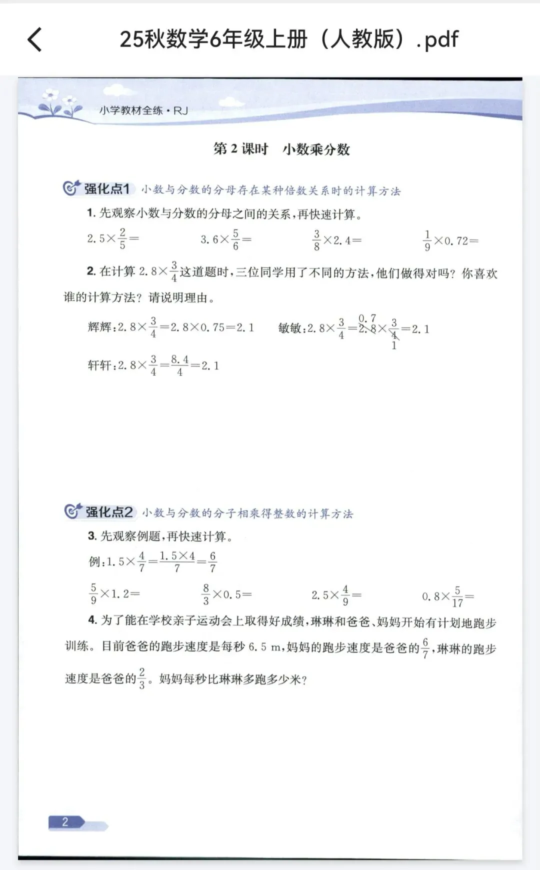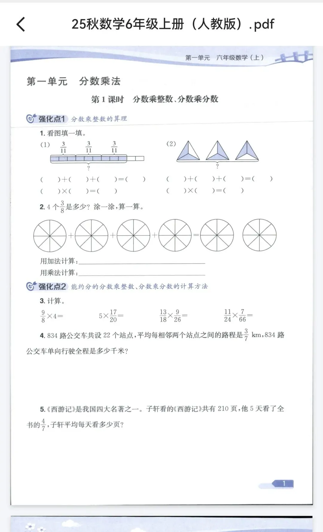 当前位置:首页>小学教材>小学教材全练口算课时全练-25秋人教版数学6年级上册