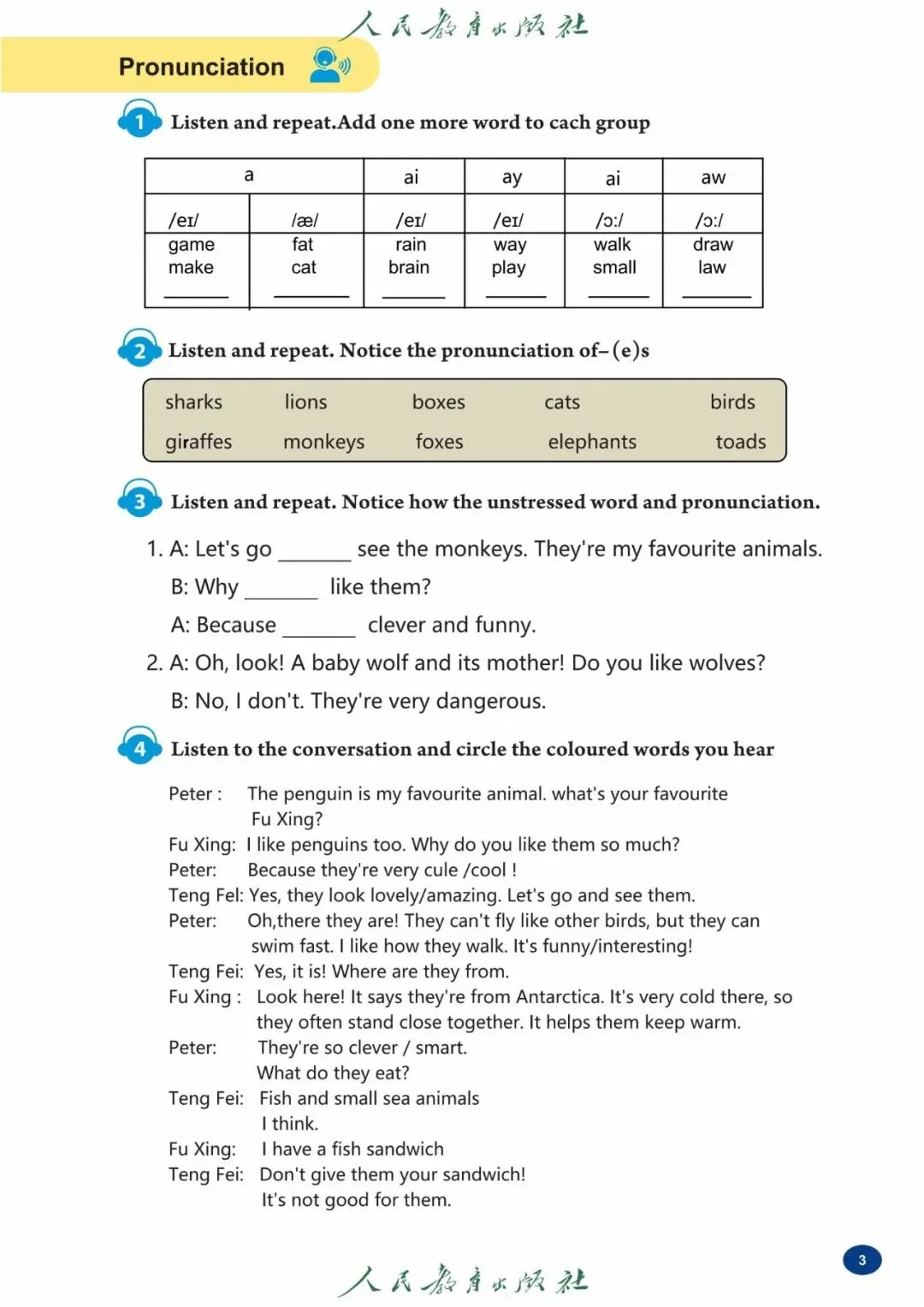 人教pep版小学英语三年级下册教材电子课本+英语单词表+英语点点跟读小程序
