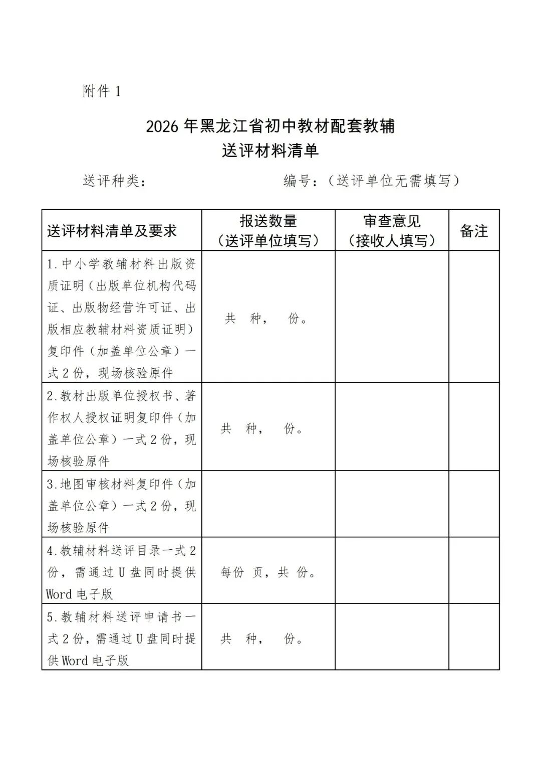 报送时,应同时提供送评材料清单(详见附件1),同一出版社报送不同种类教辅材料,须按种类准备下列材料: