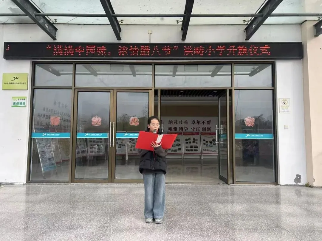 四1班优秀学生代表在国旗下向洪畴小学全体师生发出号召:腊八节不仅是美食的盛宴,更是文化的传承。一碗腊八粥,盛满了中华民族千百年来的智慧与情感。它让我们在寒冷的冬日感受到温暖,也提醒我们要珍惜当下的生活,传承先辈们的勤劳与善良。