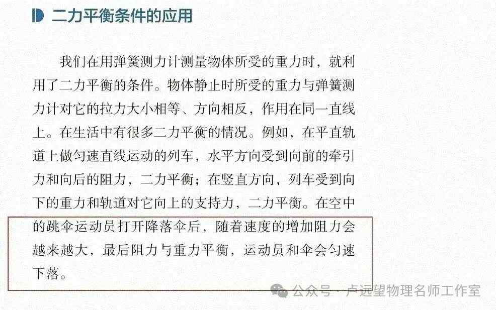 新教材把跳伞运动员的场景优化得更贴合实际啦!一眼就能 get “匀速下落” 的核心逻辑,生活中的力学平衡瞬间变直观!