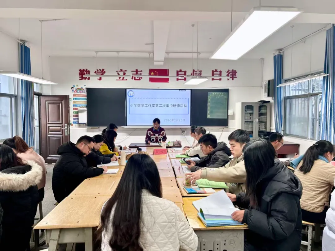 “研而不教则空,教而不研则浅。” 教材梳理是把握教学核心、提升教学实效的关键环节。2026年1月25日,小学数学周琴伟名师工作室第二次研修活动如期举行,全体成员学员以“数与运算、数量关系、图形与几何、统计与概率”四大模块为纲,聚焦1-6年级数学下册内容结构,展开深度研讨,在思想碰撞中凝聚教学共识,成效显著。