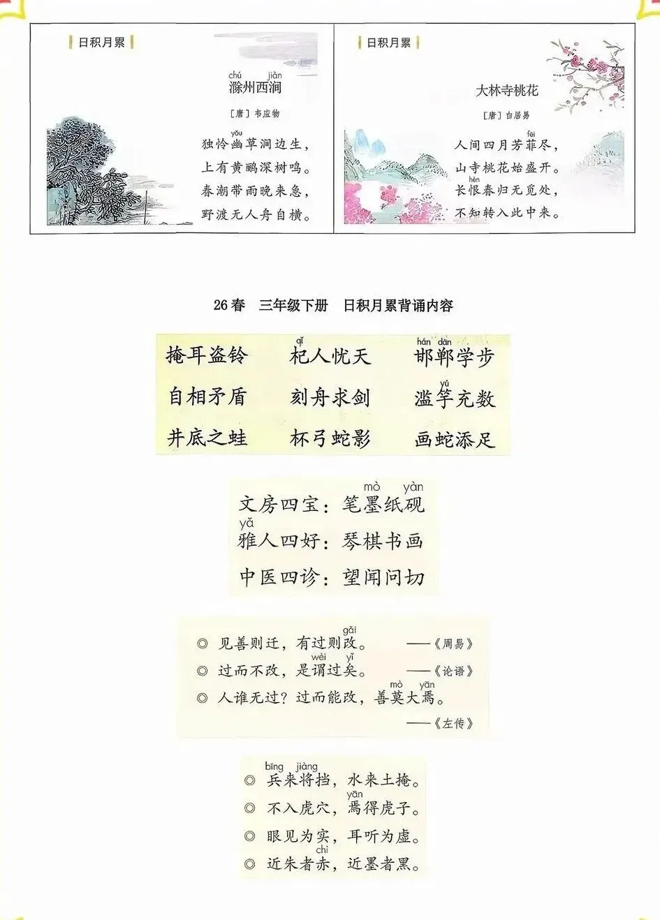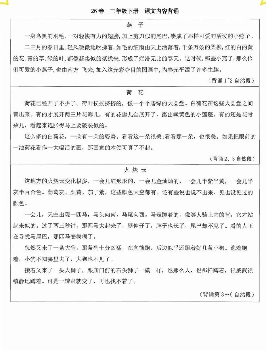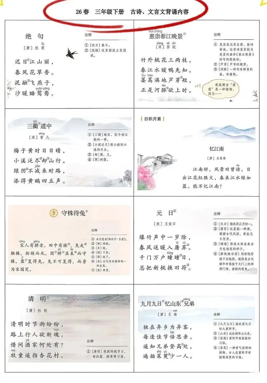 2026春人教版新教材小学三年级下册语文电子课本+课堂笔记 可下载