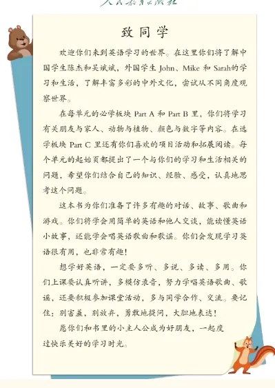人教pep版小学三年级上册英语电子课本及课文跟读动画视频(高清完整版)+课本点读