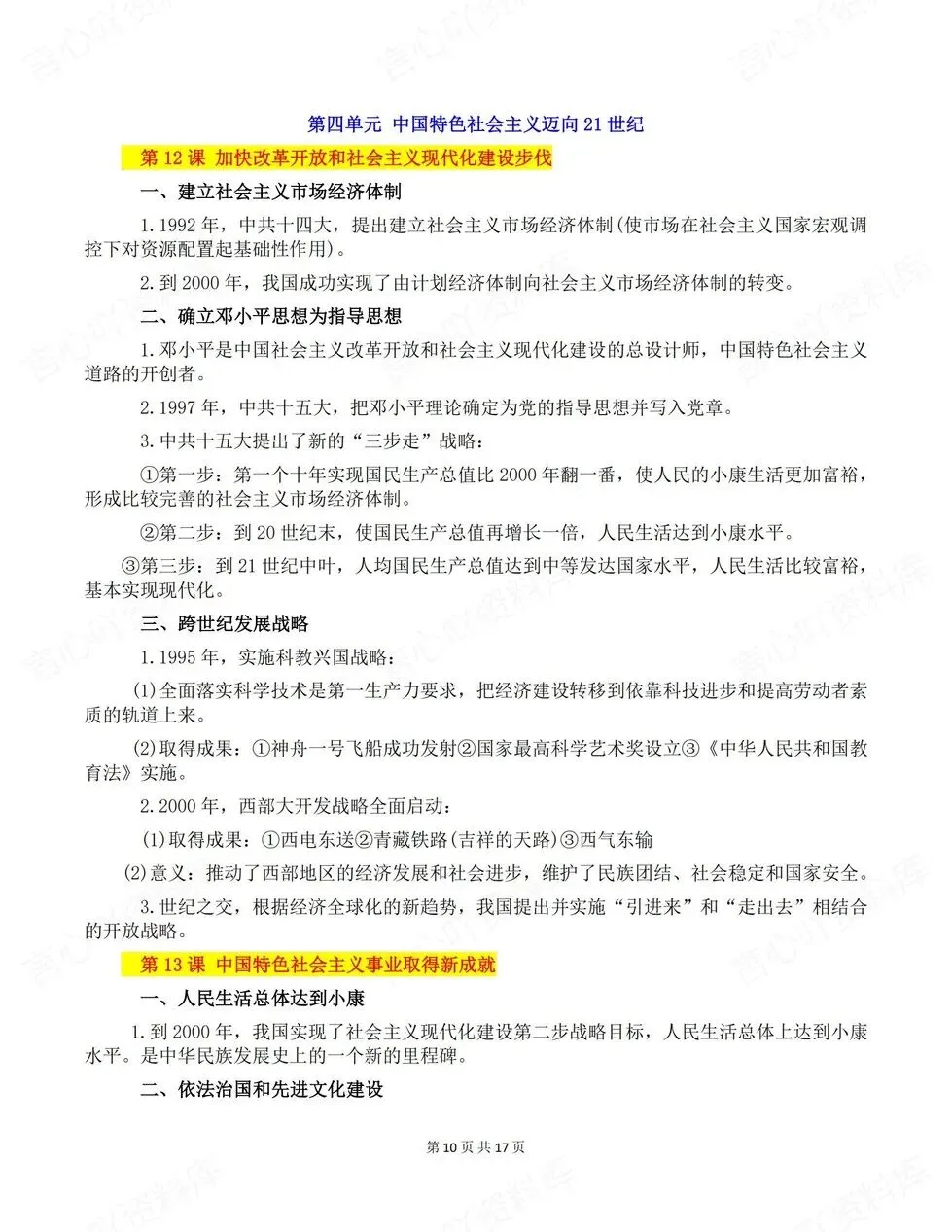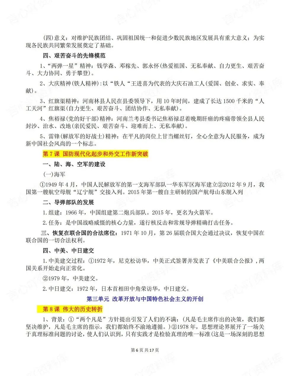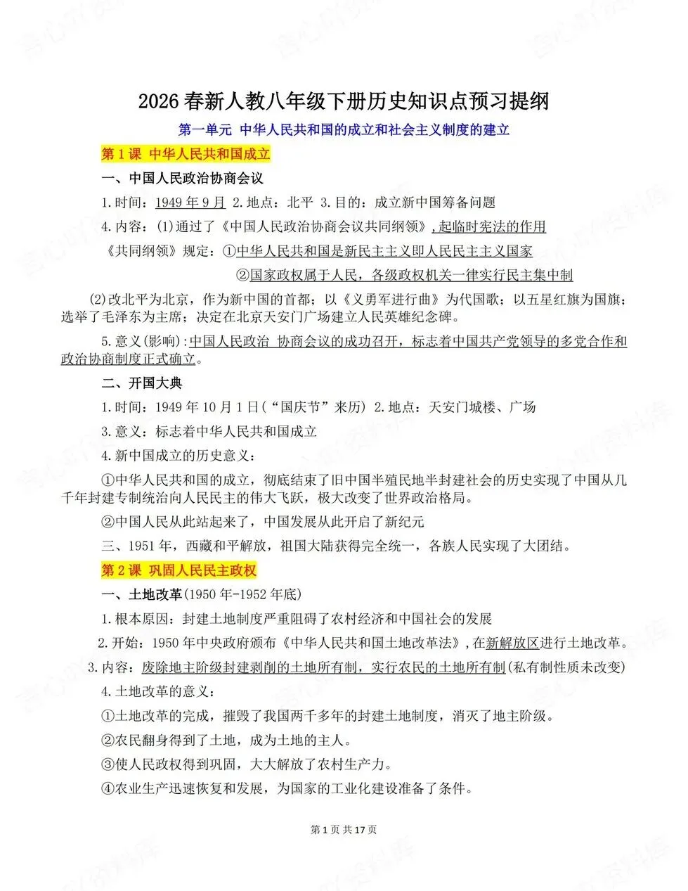 知识预习,初中历史八年级下新教材初二下册,单元预习知识提纲,CLSQ265,