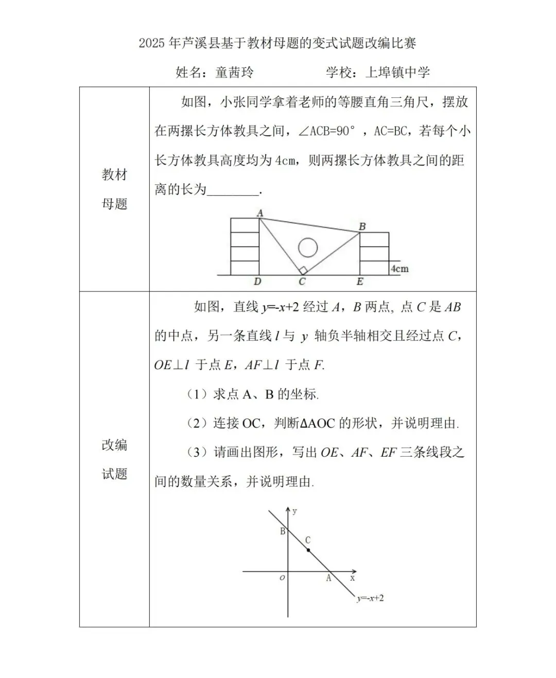 为深入落实义务教育数学新课程标准理念,引导全县初中数学教师精准研读北师大版初中数学教材,深化对教材母题的理解与运用,提升教师试题改编与命题设计能力,助力课堂教学提质增效,2025年11月-2026年1月,芦溪县初中数学名师工作室在县教研室的指导下举办了芦溪县初中数学教师基于教材母题的变式试题改编比赛。