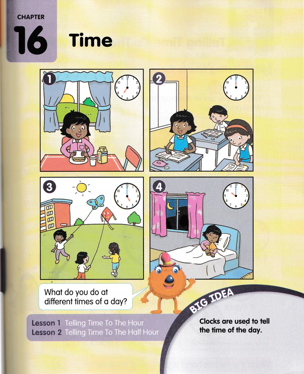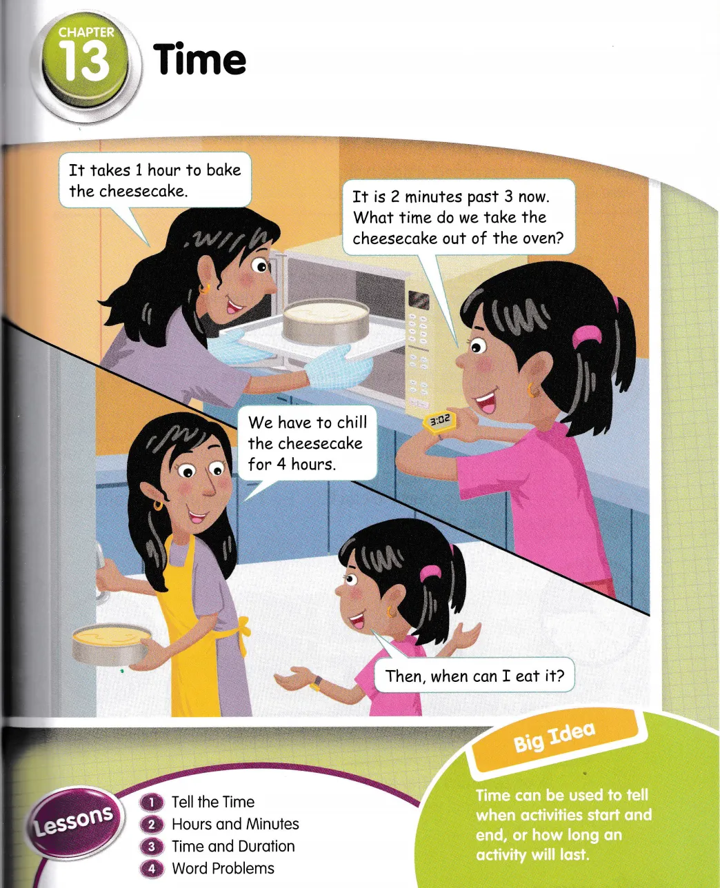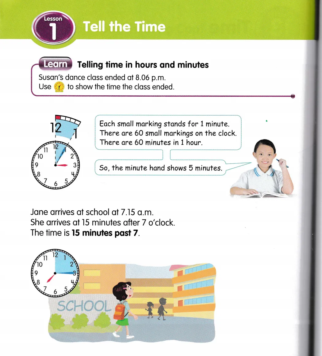 例如三年级学习“时间”这个知识点,我们看看新加坡数学是怎么教的。