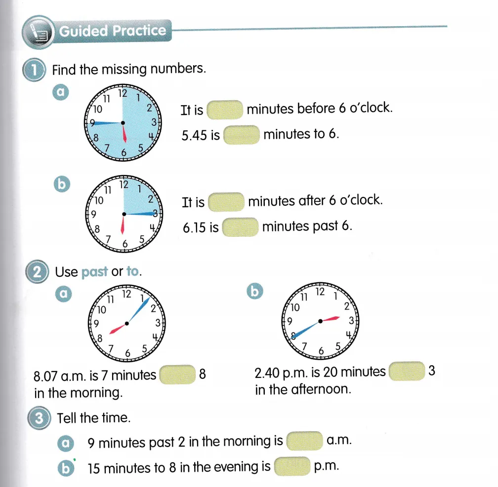 紧接着,它会给孩子讲解一个表述时间的方法,一个是“past”,一个是“to”。