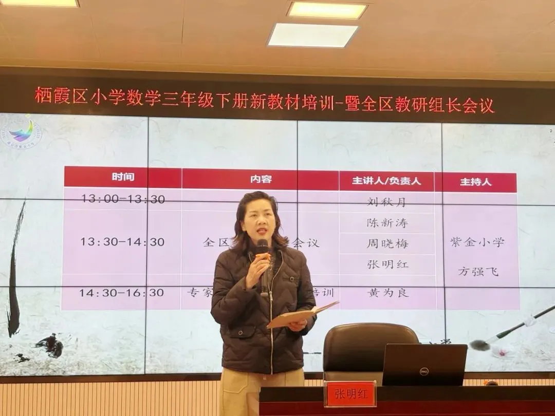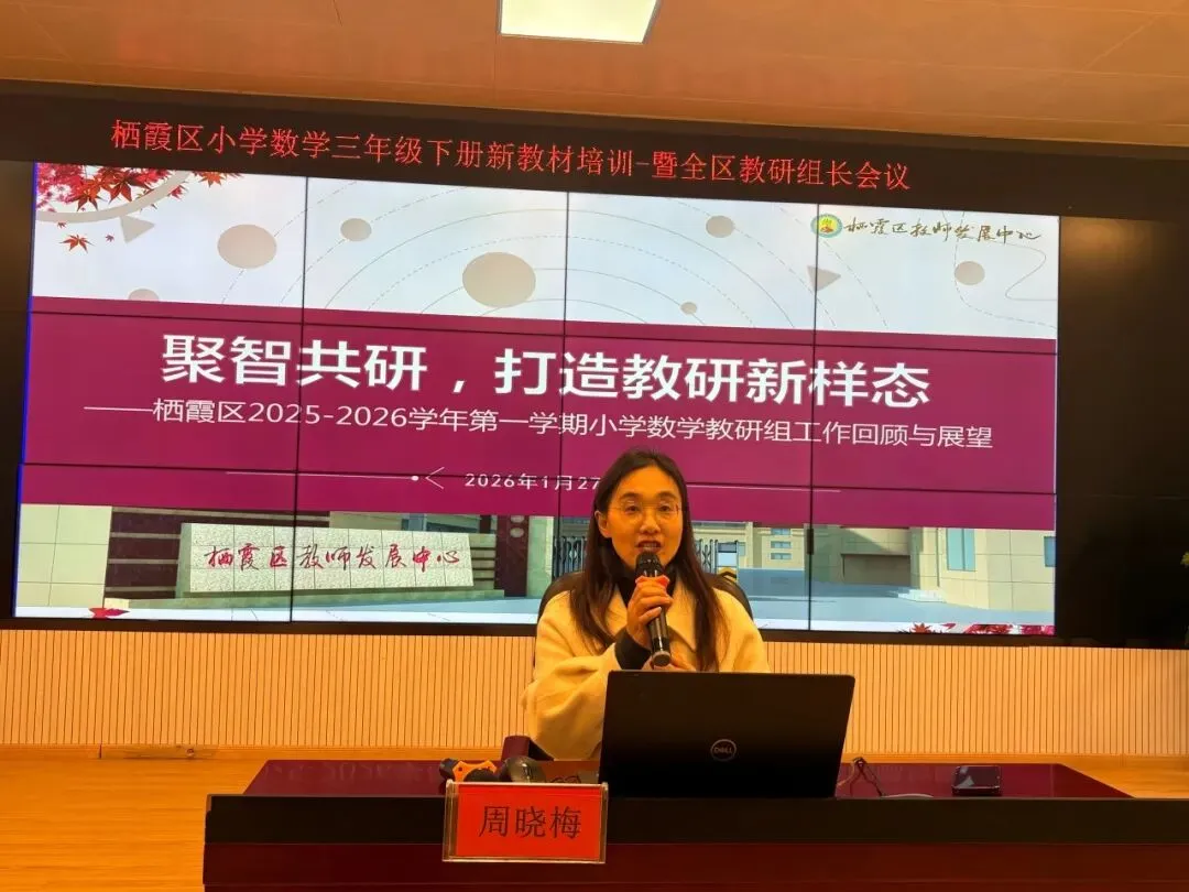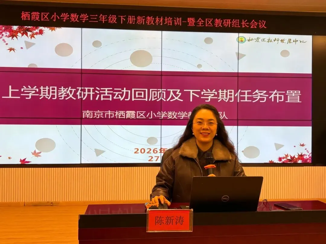 为贯彻新课程理念、精准把握教材变化、推动区域数学教学高质量发展,2026年1月27日下午,由区教师发展中心组织、南京市紫金小学承办的“三年级下册新教材培训暨全区基层校教研组长会议”在紫金小学阶梯教室顺利举行,全区三年级数学教师、各基层校教研组长或分管主任及紫金小学全体数学教师齐聚一堂,共研教材、共话教学。