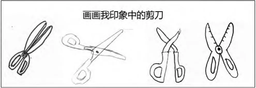 教师还要通过前测,了解学生对剪刀的认知情况。通过“画画我印象中的剪刀”的绘图(如图1)活动可知,学生对剪刀的形状比较熟悉,对轴的结构、刀刃、刀柄长度与功能的关系的认识较为模糊。