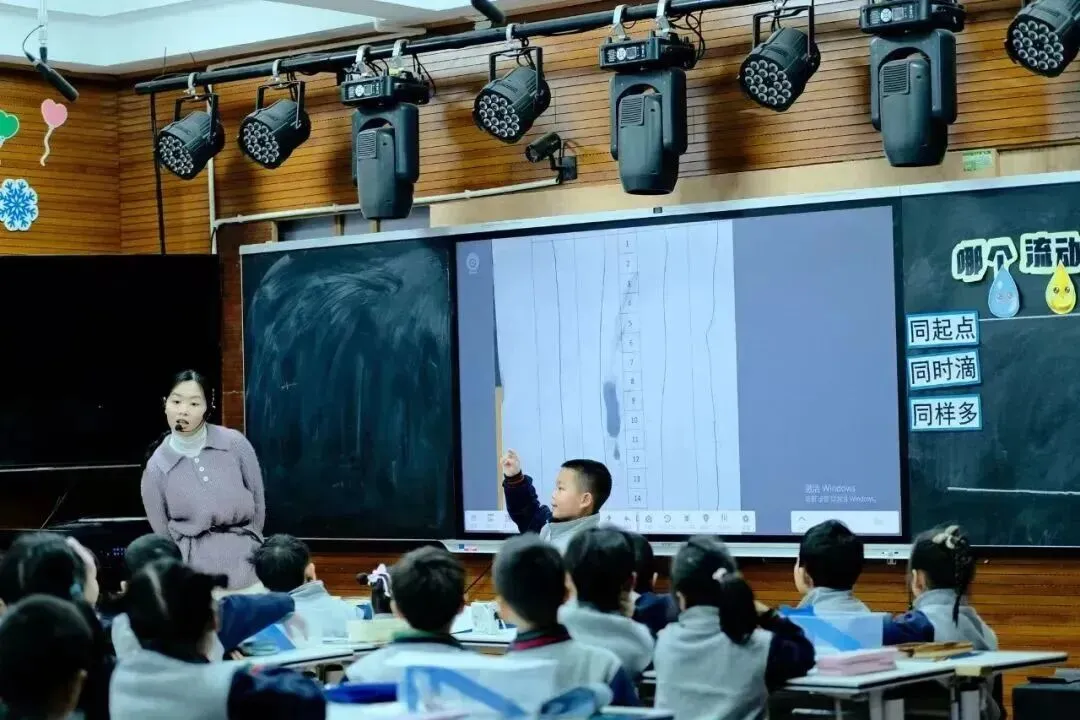 县实验学校小学部陈彦颖老师通过游戏化实验,借助液体流动大赛,将科学探究的控制变量理念融入到建立“公平、公正”的比赛规则中。且通过多感官体验和生活化延伸,让一年级学生在“玩科学”中建立观察与比较的科学思维,实现“趣”与“理”的融合。