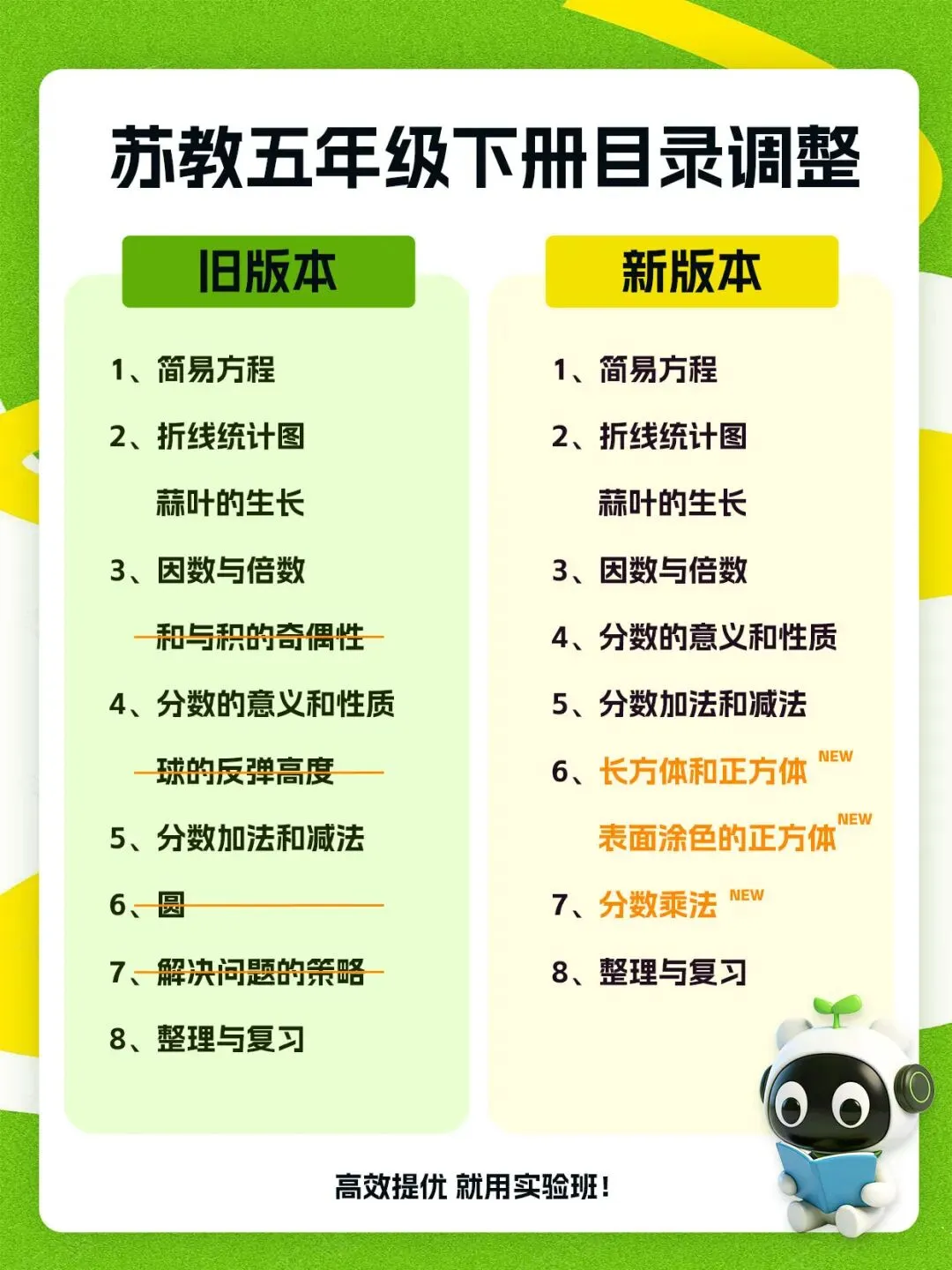 前段时间,网上传的沸沸扬扬:2026春季学期,苏教版数学教材将迎来大范围的调整,原明确的二三年级的“教改年级”外,四、五年级的教材也进行大幅单元前移与新增,为2026秋季全面启用新教材做铺垫,千呼万唤始出来,终于等到官方发布确定消息。