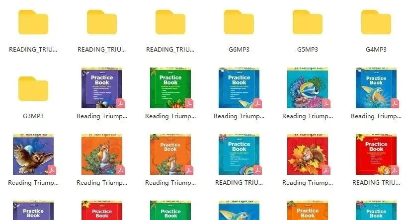 今天分享的是美国麦格劳希尔McGraw-Hill公司专为美国本土阅读能力偏弱的孩子,同时为配合语文课(Language Arts)的学习而设计的系列读本《Reading Triumphs》。整套读本共分为7个级别GK-G6,即从幼儿园到小学六年级7个级别。非常适合从低幼年龄至小学六年级英语学习者练习阅读使用,是不可多得的幼少儿英语学习配套阅读资源。