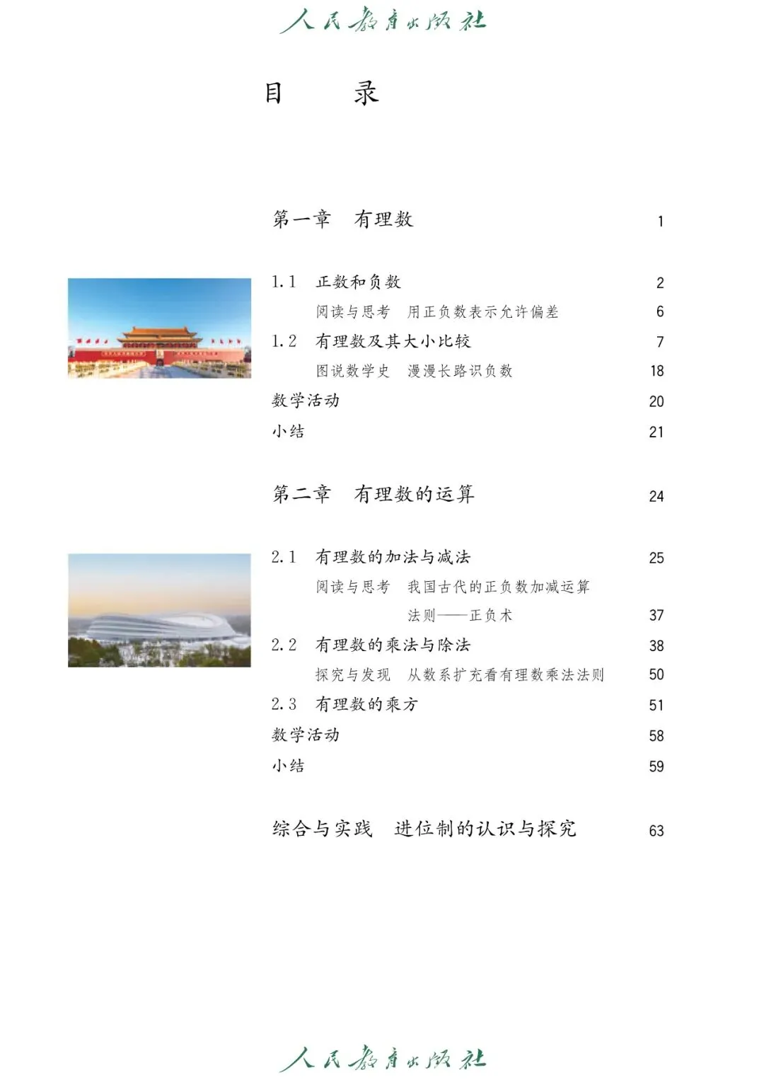 【2】第二章 有理数的运算:主要内容有理数的加法和减法;正负数加减法则;有理数的乘法和除法;乘除法的符号法则;有理数的乘方;整数指数幂;运算顺序;进位制的认识(综合与实践)。