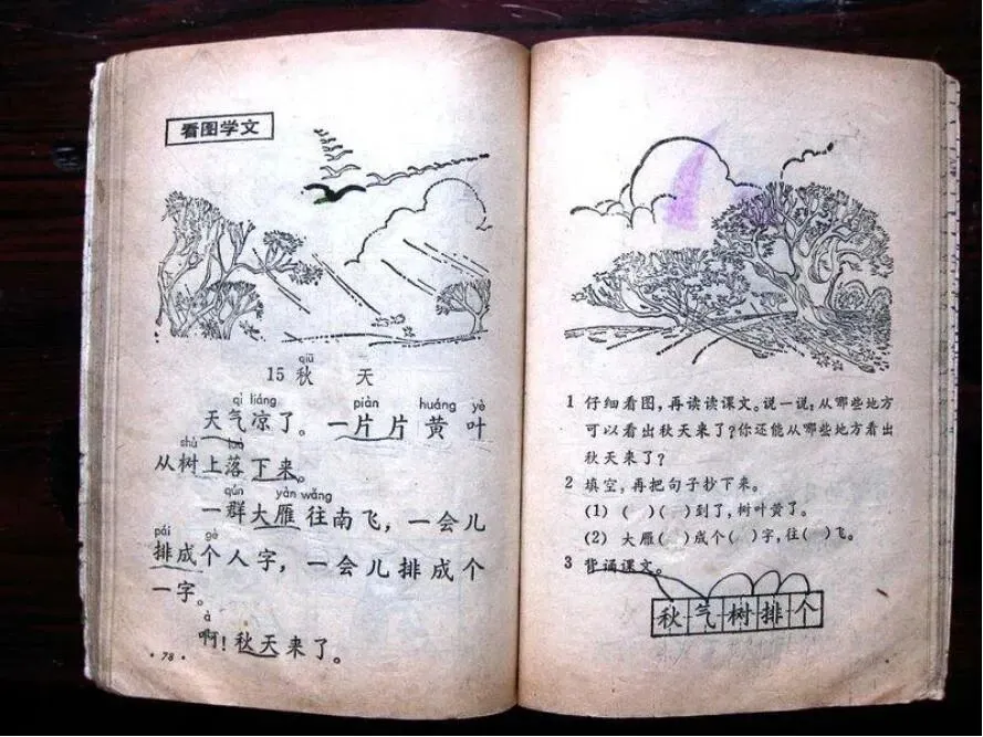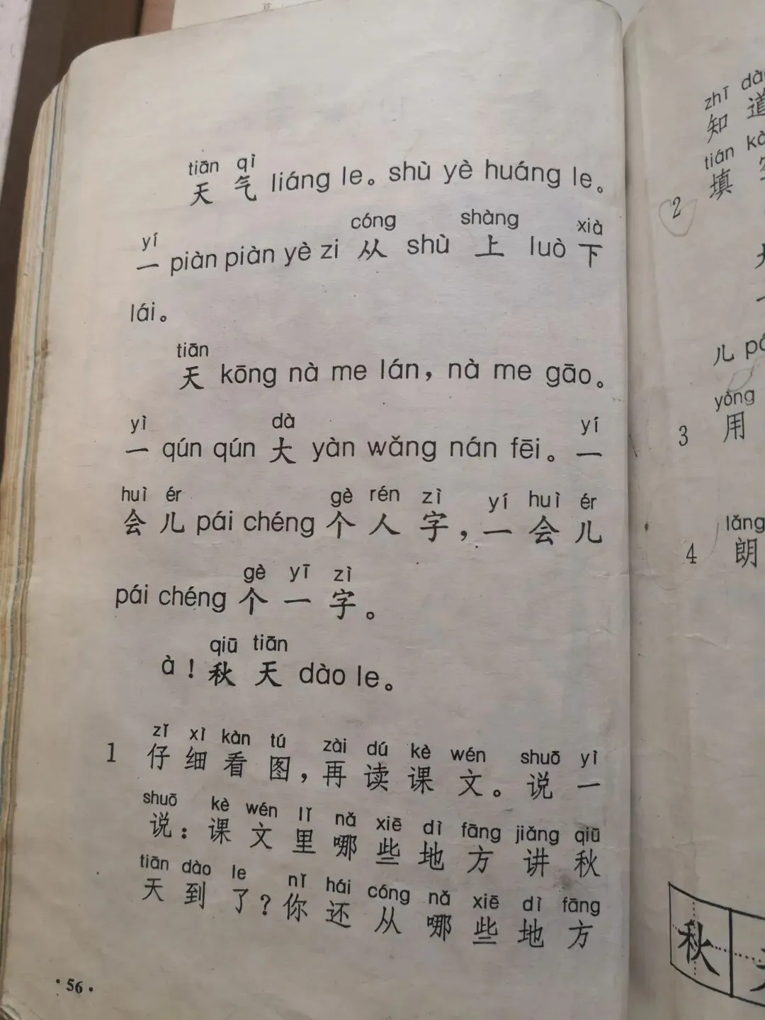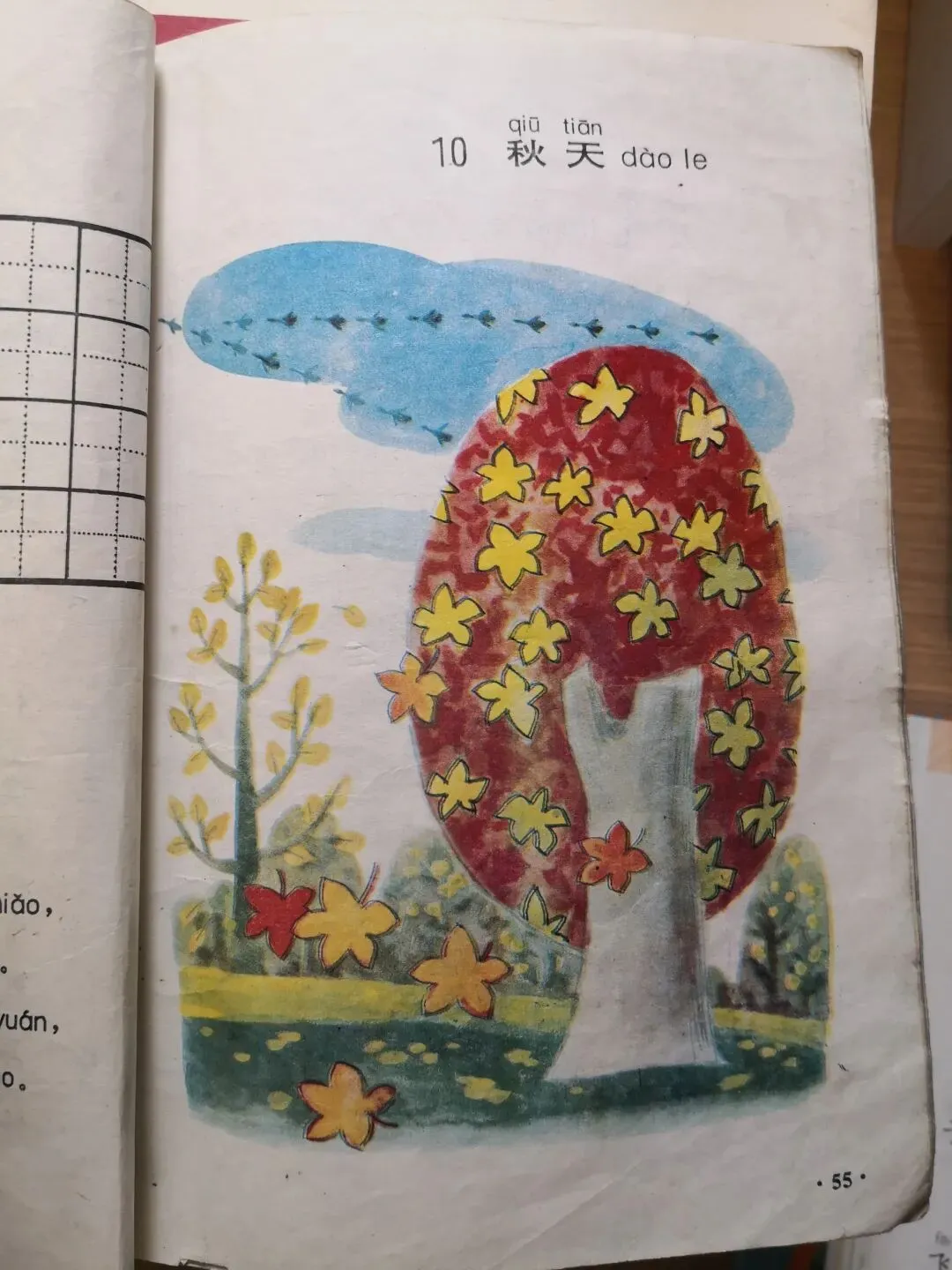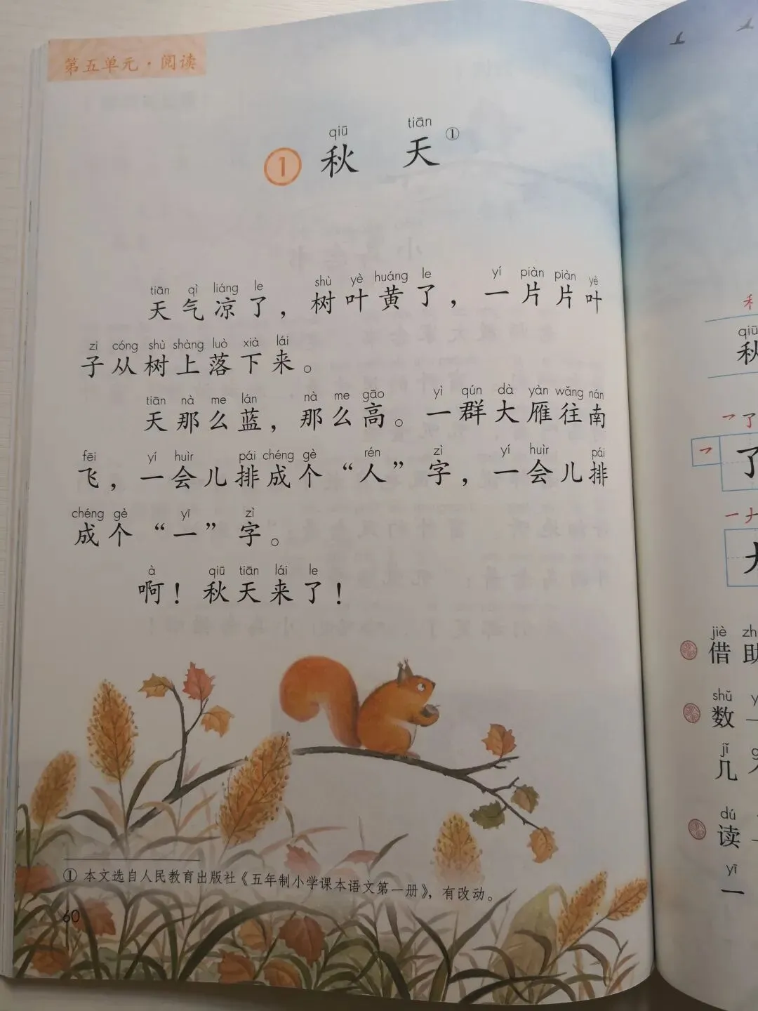 92年秋,我开始上一年级。用的是人教版五年制小学教材,都是黑白的。在前面《我的小学时光(1)》中,贴过这本教材。现在再贴《秋天》这课: