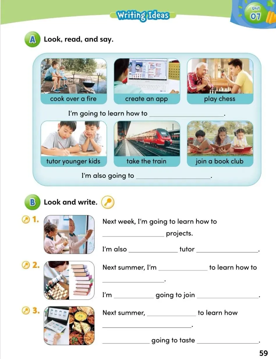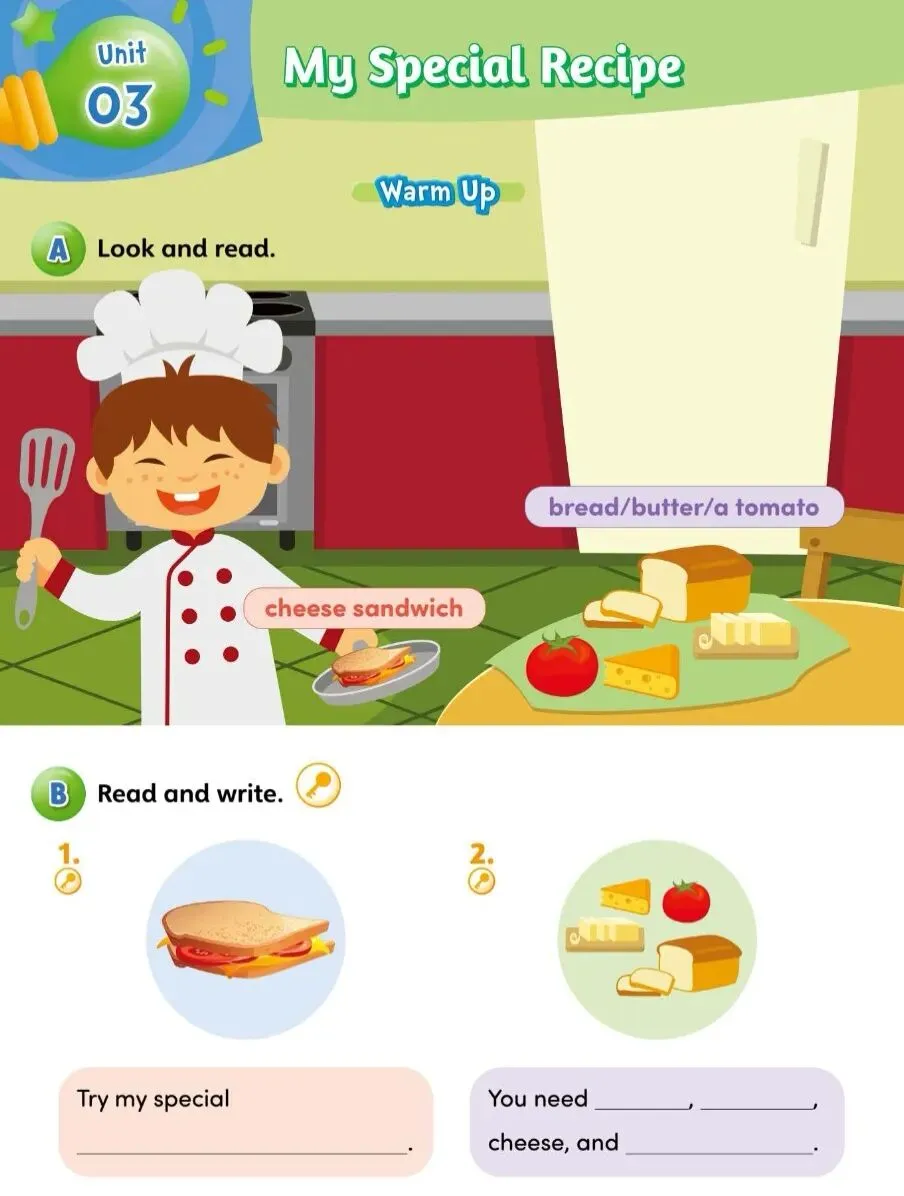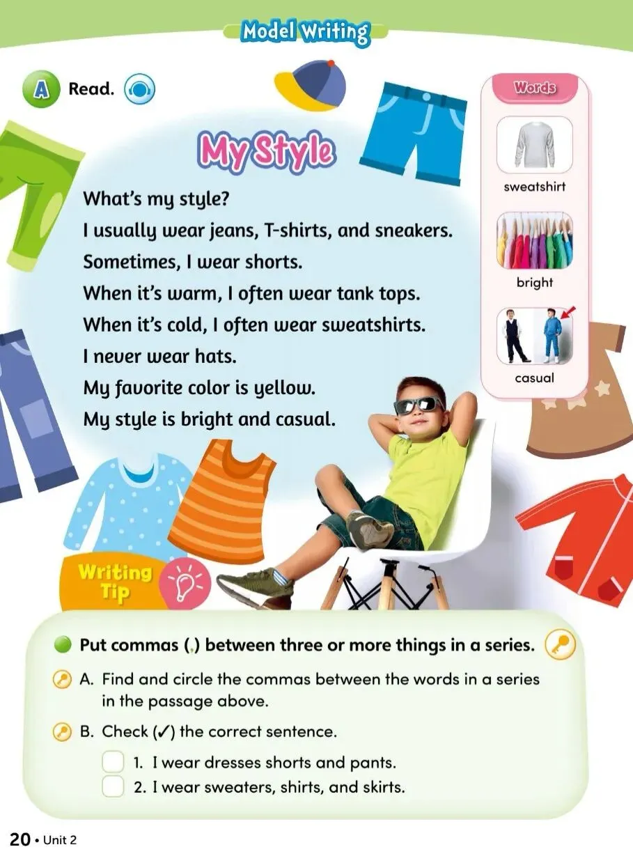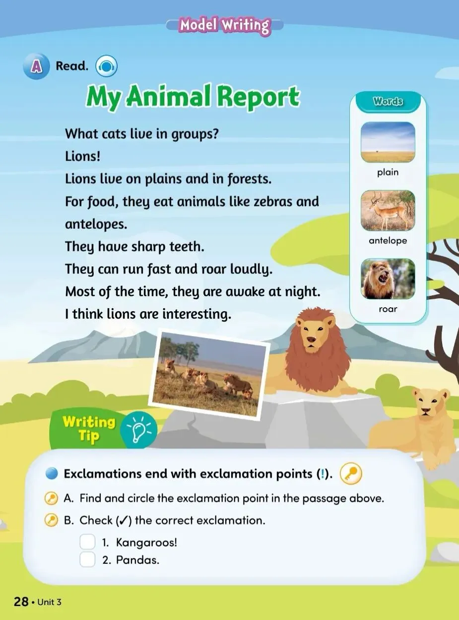 每个单元都配有原创范文,包含实用词汇和句式模板,孩子可以模仿范文创作自己的短文。