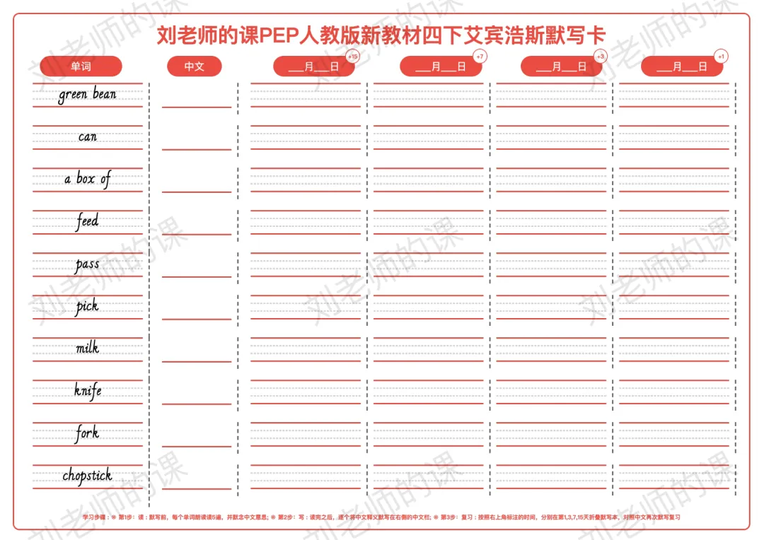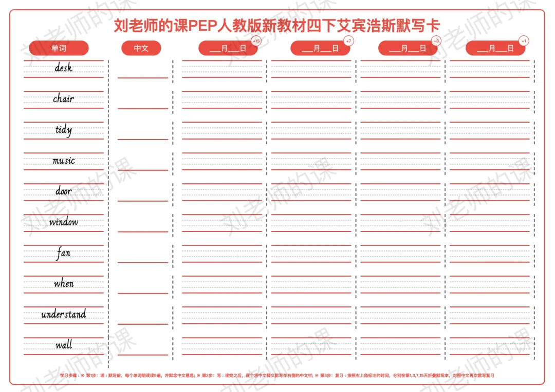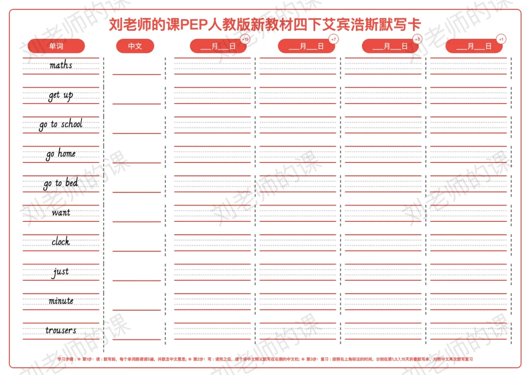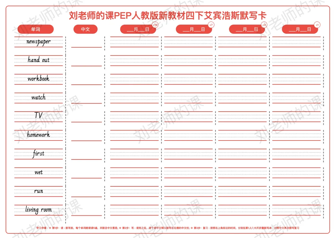 >PEP人教版新教材小学英语四下艾宾浩斯默写卡
