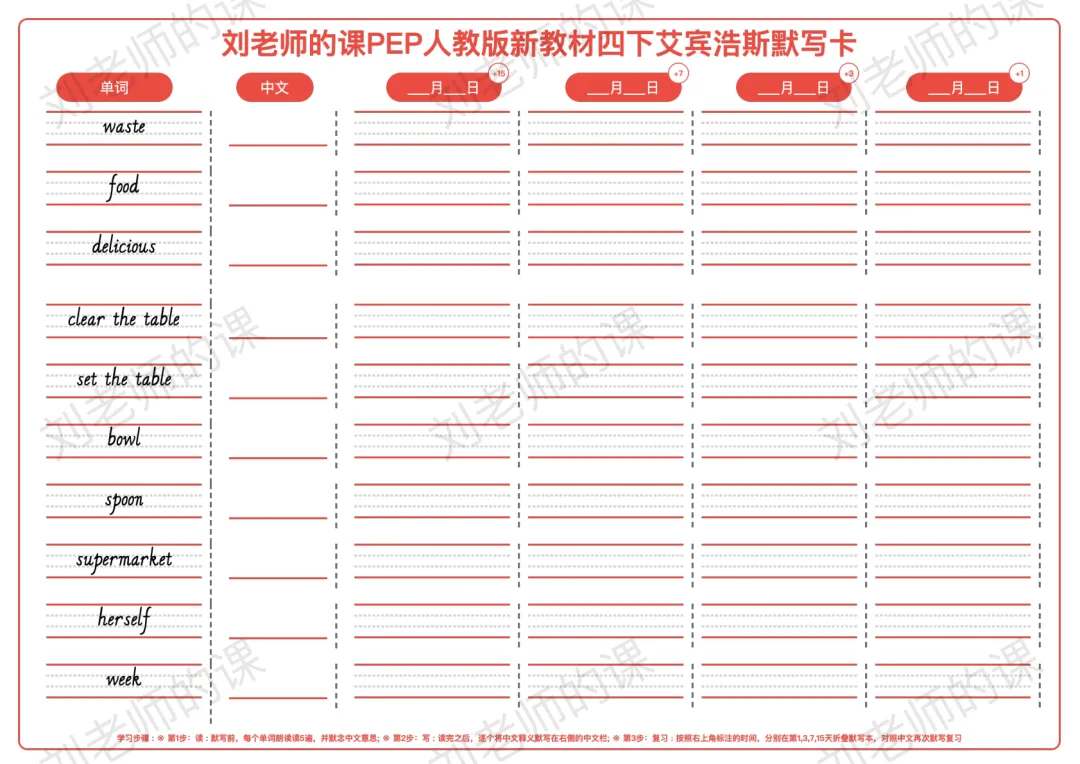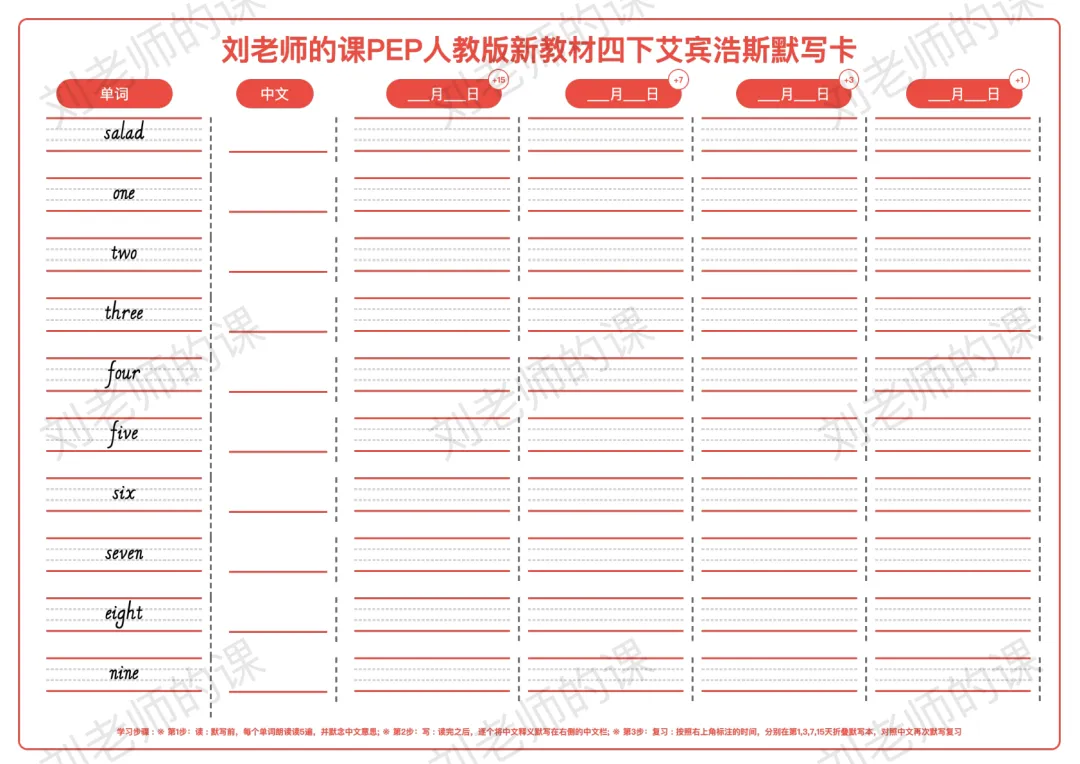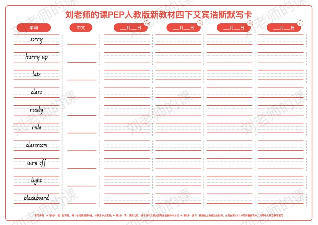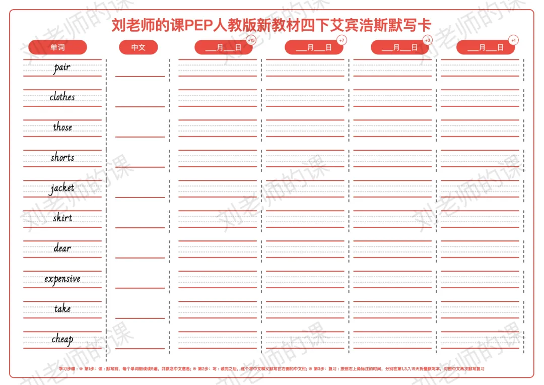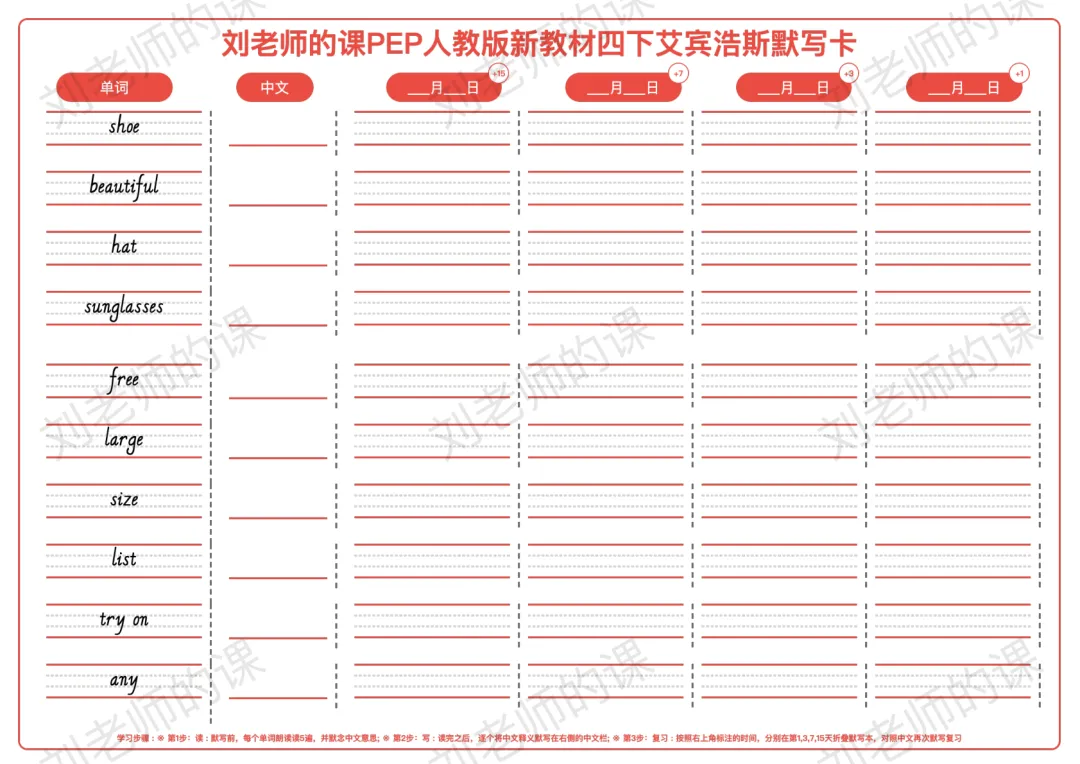 >PEP人教版新教材小学英语四下艾宾浩斯默写卡