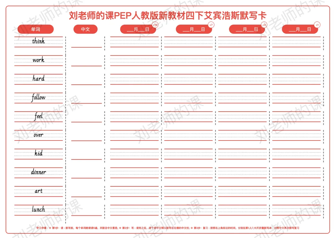 PEP人教版新教材小学英语四下艾宾浩斯默写卡