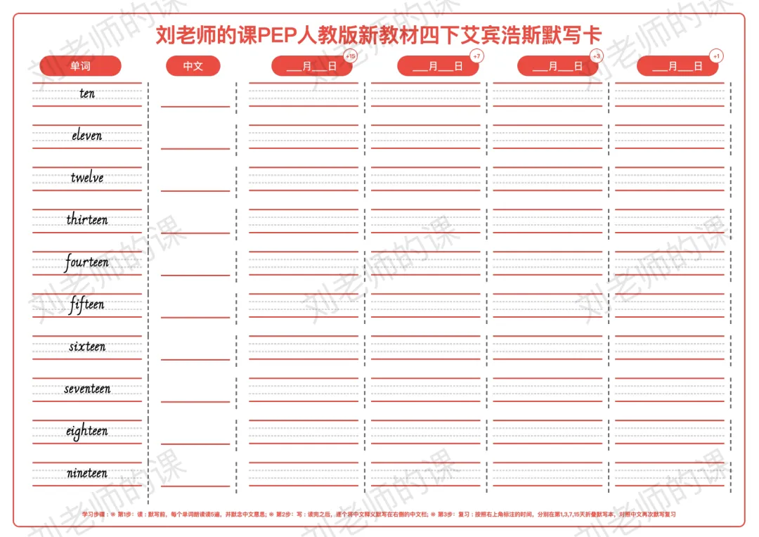 刘老师为您免费分享新教材四下默写卡