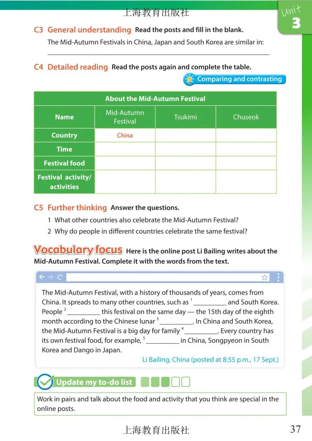 上海市初中六年级英语教材及音频 Unit 3