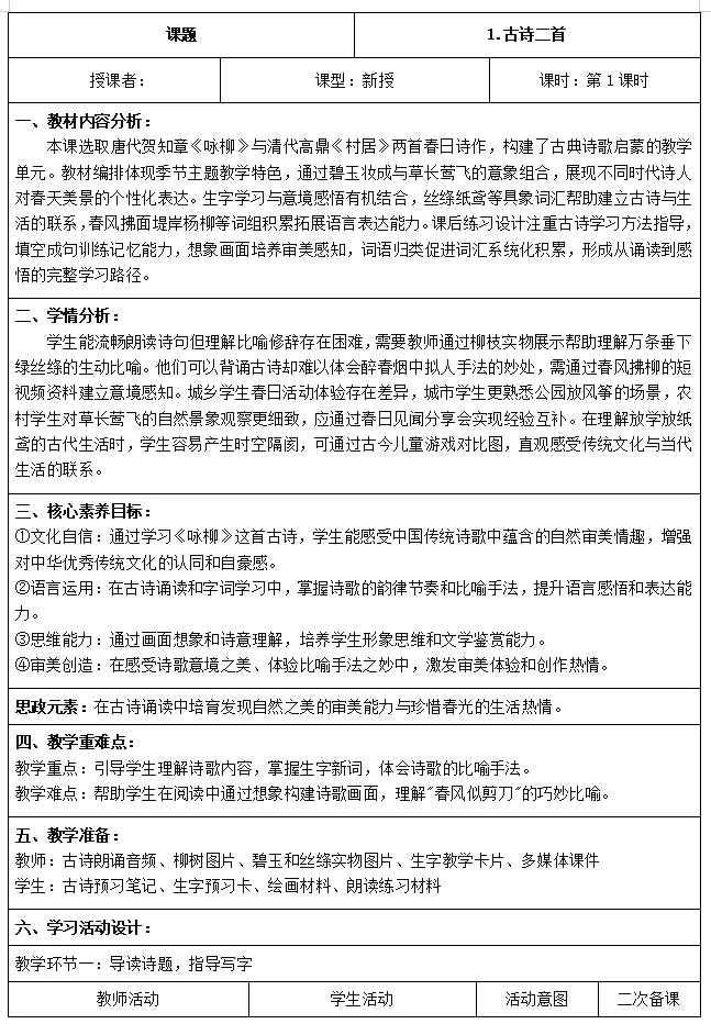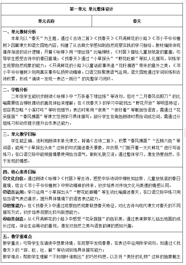 >26年春小学语文二年级下册新教材核心素养教案