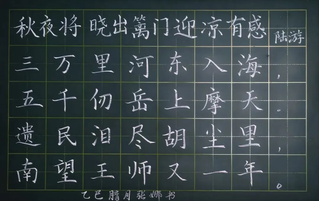 统编小学语文教材112首古诗《秋夜将晓出篱门迎凉有感》粉笔板书