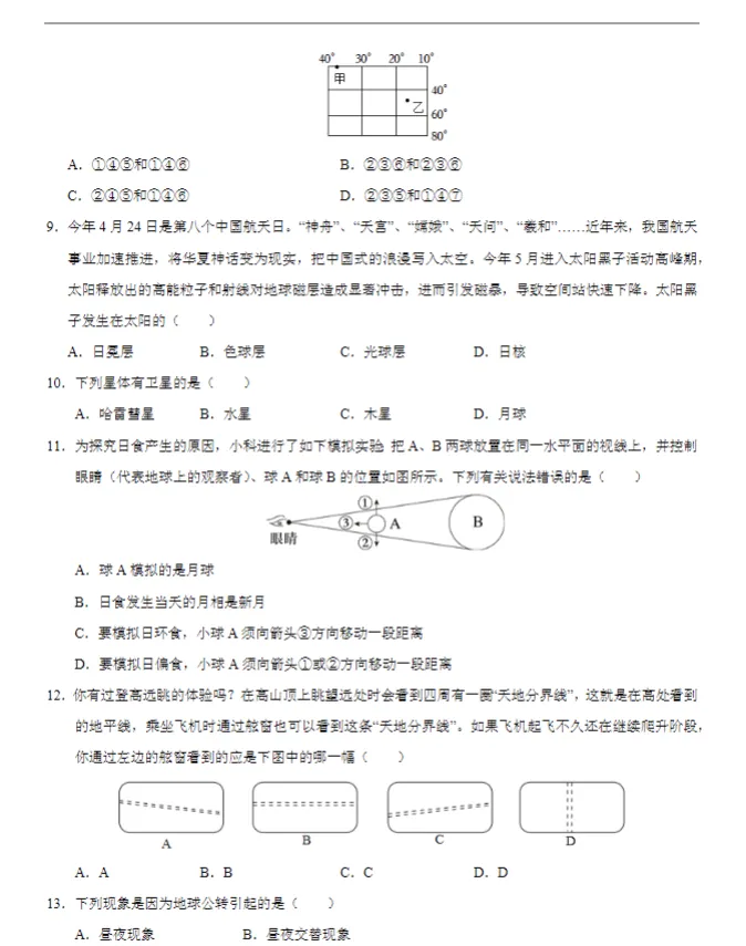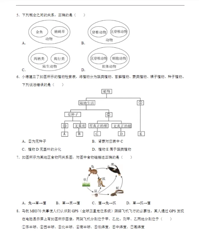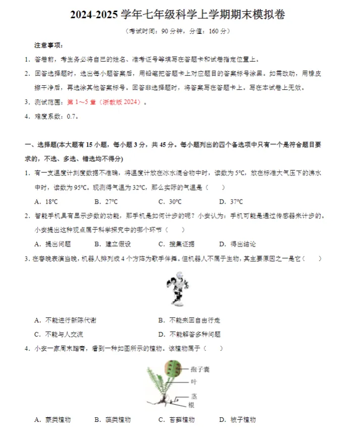 初中期末复习【试卷】新教材初中七年级上浙教版科学真题期末模拟