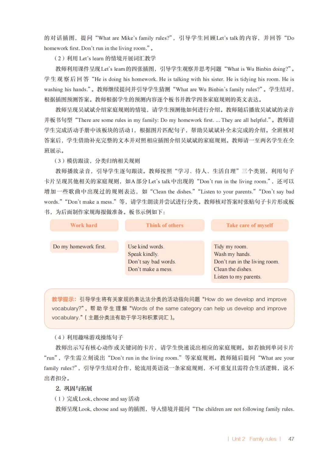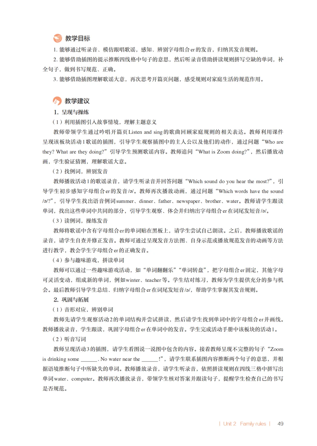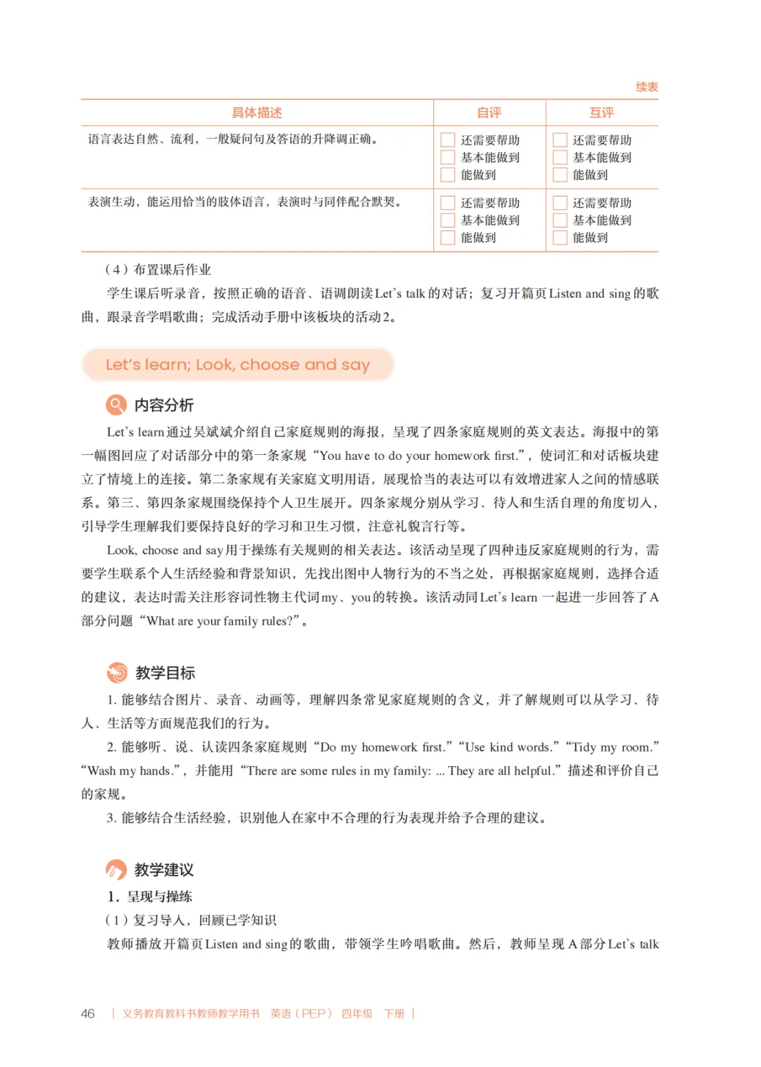 小编今天为大家整理了高清无水印的人教版PEP英语新教材四下Unit2Family rules电子教参。