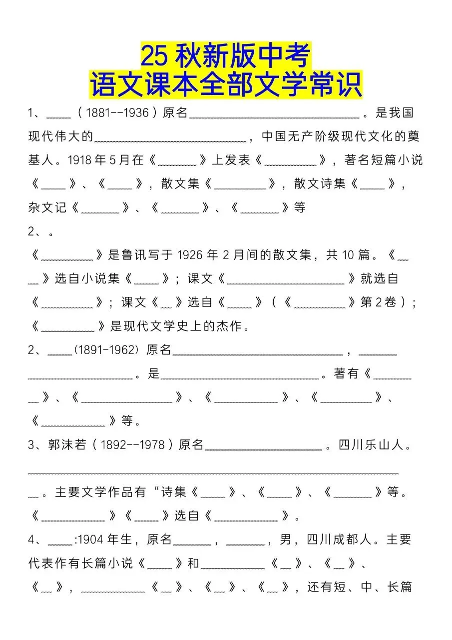 大家好,我是木木采儿,专注于小学年级教育教学资源分享,今天给大家分享的是:专项总结|初中语文《课本全部文学常识》7-8年级。PDF电子版可下载打印。文章末尾可直接领取,欢迎收藏和下载。如果觉得这份资料不错,建议分享到班级群/年级群,让其他家长打印出来,帮助孩子学习;如果觉得合适,请支持正版!