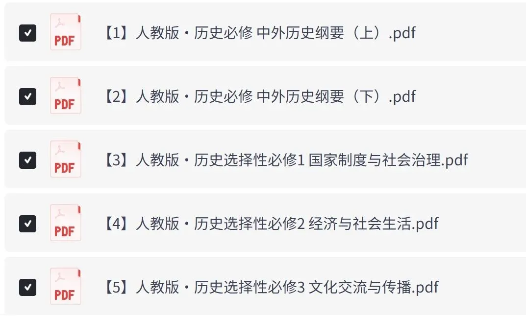 刚升入高中,历史课本还没到手就慌了?别担心,小珏已经为你整理好2025年人教版《高中历史》全套教材,5本核心课本一次集齐,直接省去四处找资源的麻烦!