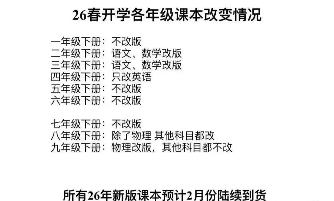 别慌!这篇超全干货指南已备好,逐年级拆解核心变动要点,附上各年级电子版教材,助力大家寒假预习,轻松衔接新学期~