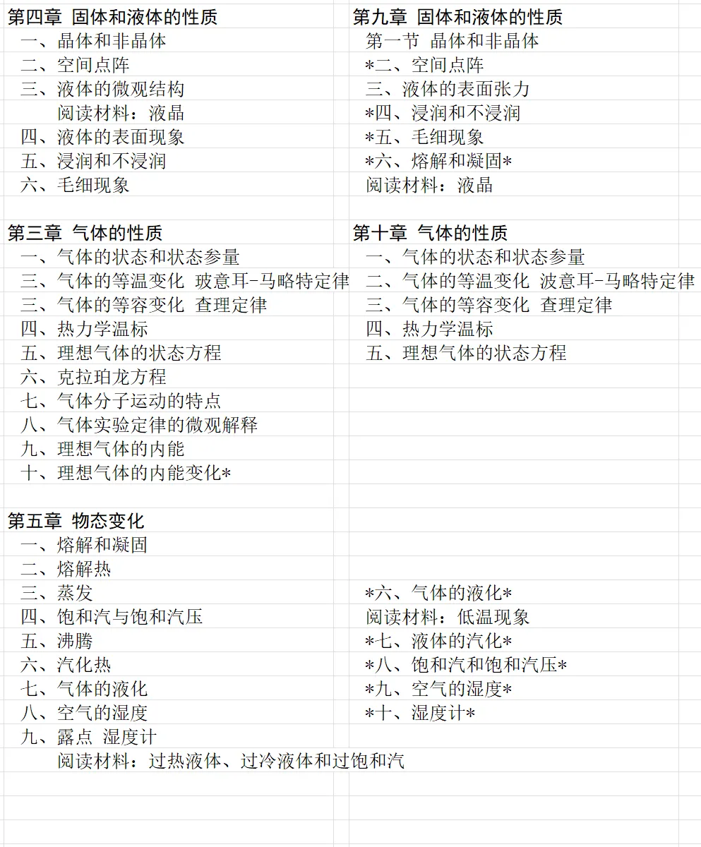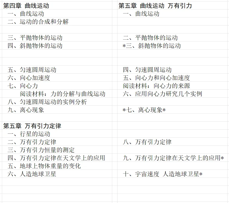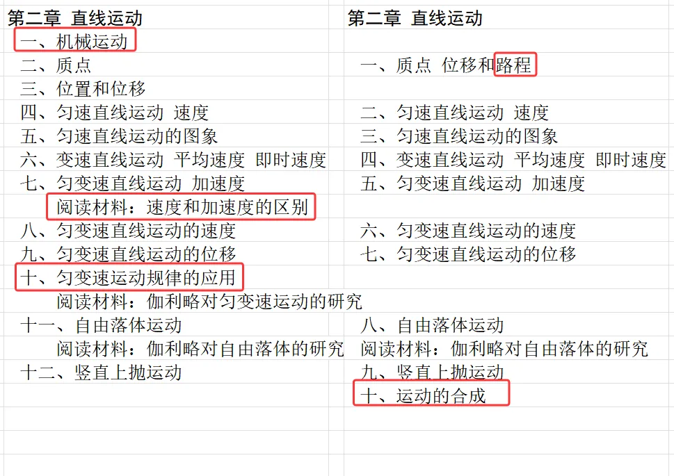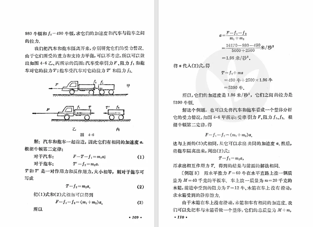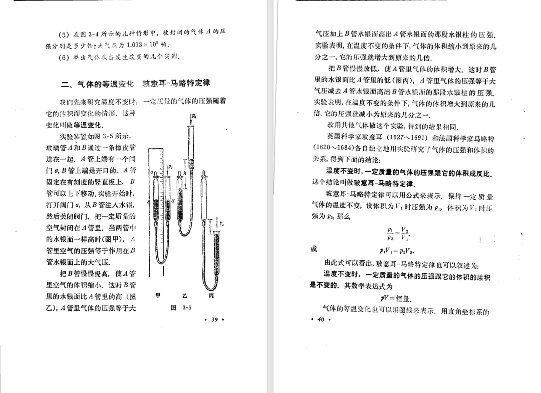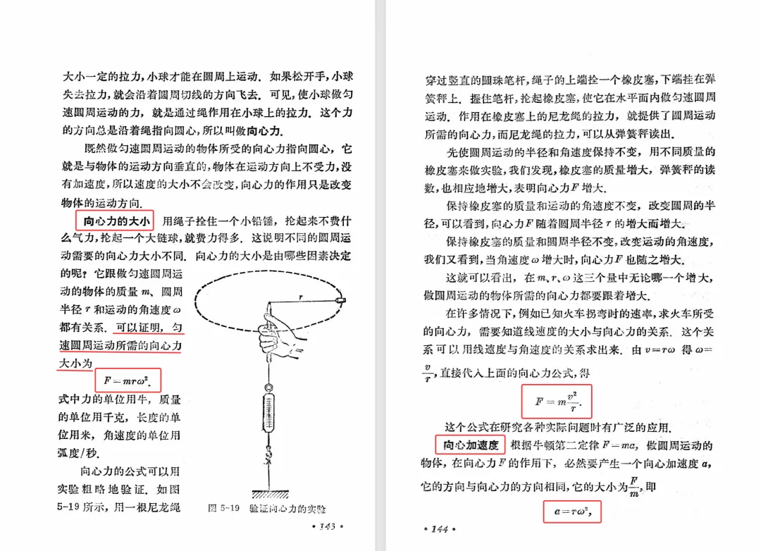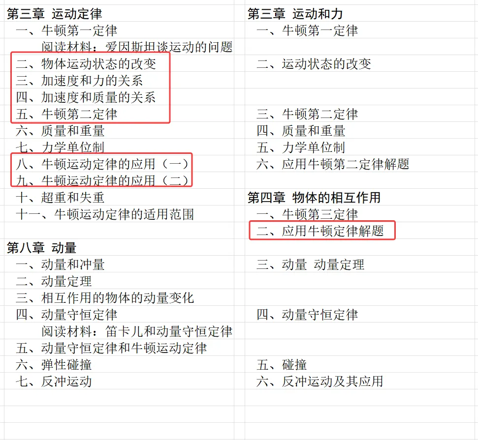 本文介绍1987年版 高级中学课本 物理 上册的详细内容。本书是八十年代 高级中学课本 物理 乙种本 上册 的第二版,在第一版的基础上进行少量修改和重新排版。为了简化称呼,本文仍将1987年版高中物理称为高中物理乙种本。接下来本文将通过对比高中物理甲种本和乙种本的方式对乙种本进行详细介绍。对比乙种本第一章和甲种本对应的内容。如下表所示,左边一列是甲种本,右边一列是乙种本。乙种本将胡克定律合并入弹力一节,将牛顿第三定律放到后面的第四章。乙种本没有专门介绍物体受力分析的小节,弱化了力学的训练,不利于应试。乙种本没有专门介绍标量和矢量、矢量运算的小节。甲种本第六章的第二节和第三节讲的都属于有固定转动轴的物体的平衡,乙种本内容少一些,只有一节。乙种本没有力偶。甲种本的平衡和种类,以及稳度,这两个小节在乙种本是选学内容。不过,甲种本没有乙种本的候风地动仪这个阅读材料。从本书开头的第一章我们就能发现乙种本的难度大幅降低。根据人民教育出版社出版的《新中国中小学教材建设史 1949-2000 研究丛书 物理卷》(简称《物理教材建设史》)的介绍,甲种本和乙种本并用时期,物理高考按甲种本命题,对于使用乙种本的学生不利。胡克定律出现在本节末尾,如下图第14页中间所示,内容很少。下面看甲种本。先看第三节 弹力。这节内容表达的意思和乙种本是相同的,但是内容要详细一些,有的例子更复杂一些。下面是第四节 胡克定律。本节不仅详细介绍了弹力与形变的关系,展示了刻画弹簧形变与弹力关系的胡克定律,还指出了胡克定律的适用范围,比乙种本详细很多。回到乙种本,看第五节 共点力的合成。本节先讲互成角度的共点力的合成,再讲共线的共点力的合成。然后,介绍矢量和标量的概念,指出矢量合成遵循平行四边形法则。下面看甲种本的内容。下图的第八节介绍力的合成,主要是互成角度的共点力的合成。教材不仅给出了力的平行四边形法则,还介绍了三角形法则。后面还有第九节介绍力的合成的计算。本节末尾,如下图第44页后半页所示,教材指出同一直线上的矢量运算也满足平行四边形法则的计算公式。有一点值得注意,甲种本有差不多两页纸介绍矢量和标量,乙种本只有短短一段话。甲种本难度大,篇幅长,乙种本难度低,篇幅短。可是,难度低就一定要对应篇幅短么?我觉得是不合适的。我反而觉得难度低的版本应该将概念解释的更详细,帮助更多的学生理解清楚概念,掌握好知识。下面看乙种本的第八节 有固定转动轴的物体的平衡。本节只有两个小标题,力矩 和 有固定转动轴的物体的平衡。本节开头有很短的两段话介绍转动的物体在什么情况下出于平衡态:静止或匀速转动。本章是第一章,教材还没有介绍运动,也没有介绍匀速圆周运动,所以教材在括号里解释了什么是匀速转动。再看甲种本对应的两个小节。下图是第二节 力对物体的转动作用。这节的第一个小标题介绍转动,转动这个概念在甲种本 第二章 直线运动 第一节 机械运动 中介绍过。段落里面有提到圆周运动的一些概念。所以,甲种本为了解释转动,使用了很多运动学的概念,这也是甲种本要把转动平衡的内容放到曲线运动之后的原因。全日制十年制高中物理,和高中物理乙种本不对转动做详细的解释,所以与物体的平衡有关的内容就和力的内容放同一章了。接下来的第三节专门讲有固定转动轴的物体的平衡,没有划分小标题,正文内容不多,乙种本还给了个例题,甲种本没有。本节末尾还有个阅读材料,候风地动仪,甲种本没有这个阅读材料。下面是甲种本的 平衡的种类 和 稳度 两个小节,比乙种本详细一些。先对比甲种本和乙种本的本章目录。甲种本有一节专门介绍机械运动的概念。乙种本把质点和位移放同一个小节,小结标题还有路程的概念,事实上甲种本也会对比位移和路程两个概念,只是没写到标题里。甲种本有一个阅读材料对比速度和加速度的区别,乙种本没有。甲种本第十节讲匀变速运动规律的应用,乙种本没有。乙种本将运动的合成放在本章末尾,甲种本放在曲线运动这章里。甲种本和乙种本的区别不仅体现在目录里,内容也有很大的差别。如下图第57页所示,乙种本借助速度计帮助读者理解即时速度,然后简单地解释物体在某一时刻或某一位置的速度叫做即时速度。前面的文章已经说过,全日制十年制高中物理对于即时速度的要求还要更高,还用位移-时间图象求即时速度。下面看乙种本第七节 匀变速直线运动的位移。这一节非常暴力,直接使用两个结论——第一,匀变速直线运动的平均速度等于初末速度的平均值;第二,匀变速直线运动的位移等于平均速度乘以时间——得出匀变速直线运动的位移公式。在页尾注解写道只有匀变速运动才能如此求平均速度。后面就是例题。接下来给出初末速度、加速度、位移的关系式,然后又是一道例题。下面看甲种本。如下图所示,甲种本采用极限思想,借助速度-时间图象求解匀变速直线运动的位移公式。接下来给出匀变速直线运动中初末速度、加速度和位移的关系。最后看红框部分,这是乙种本求解匀变速直线运动位移公式的方法。回到乙种本,看第十节 运动的合成。教材简单介绍了位移和速度的合成。如下图所示,甲种本在介绍平抛运动前介绍运动的合