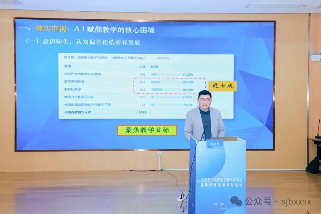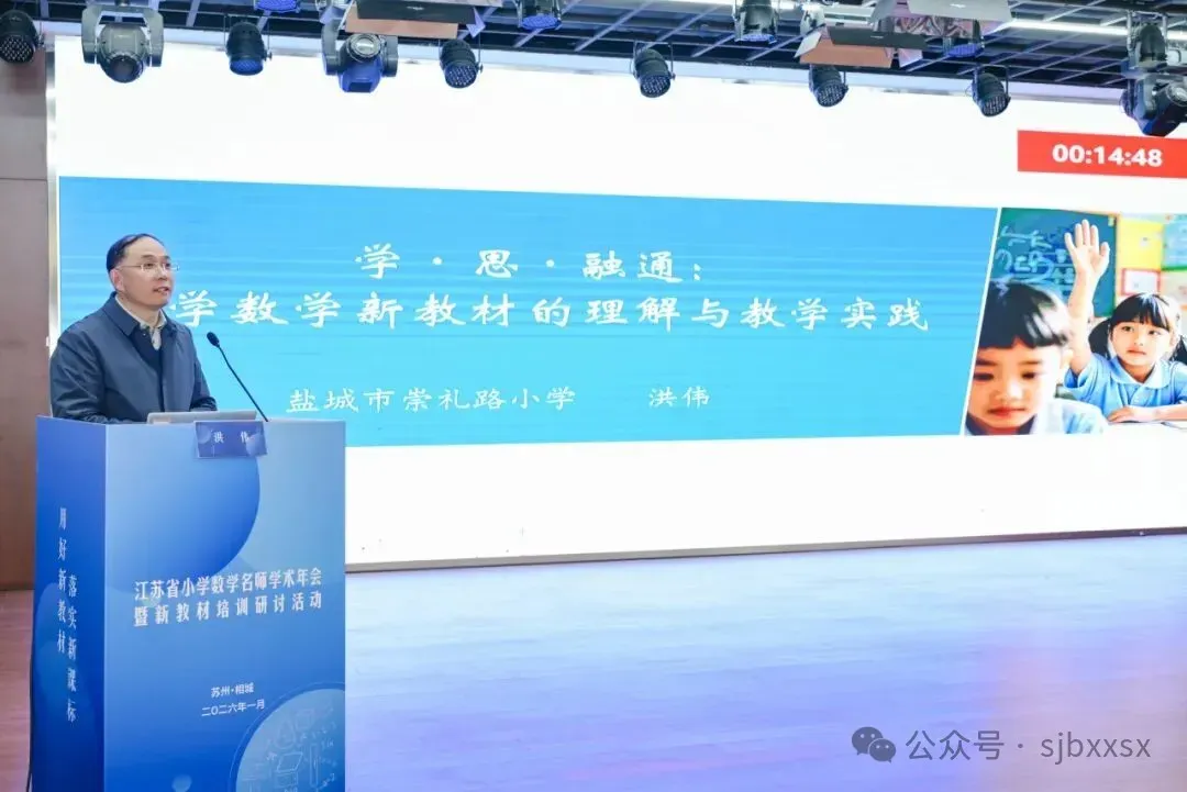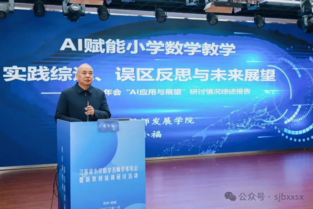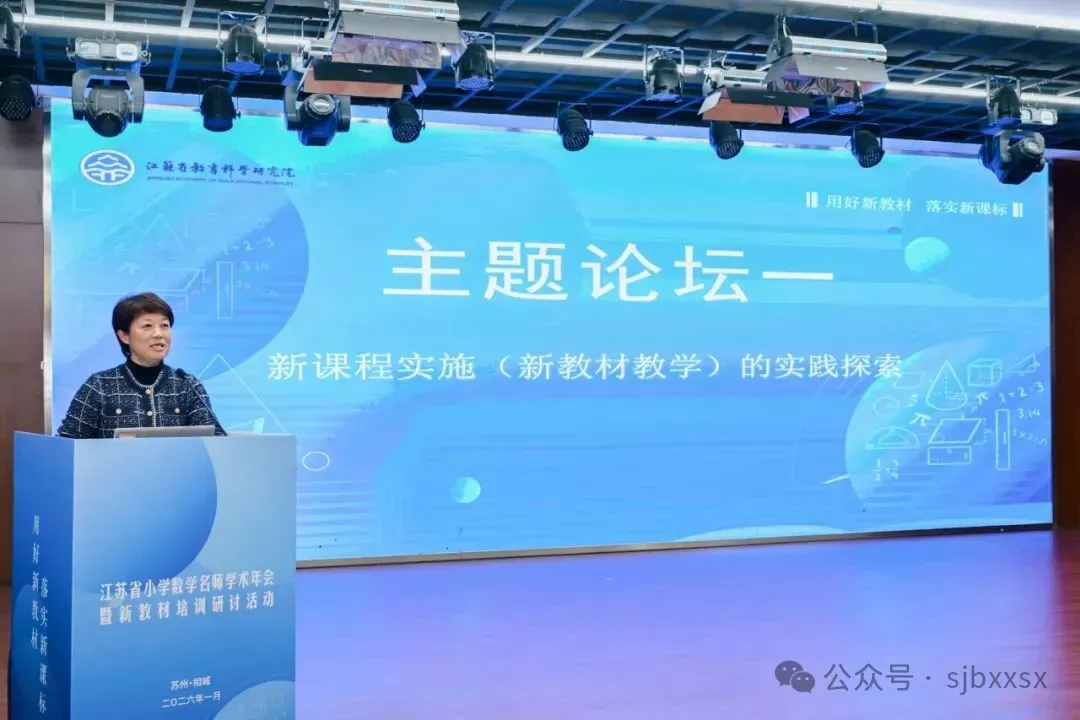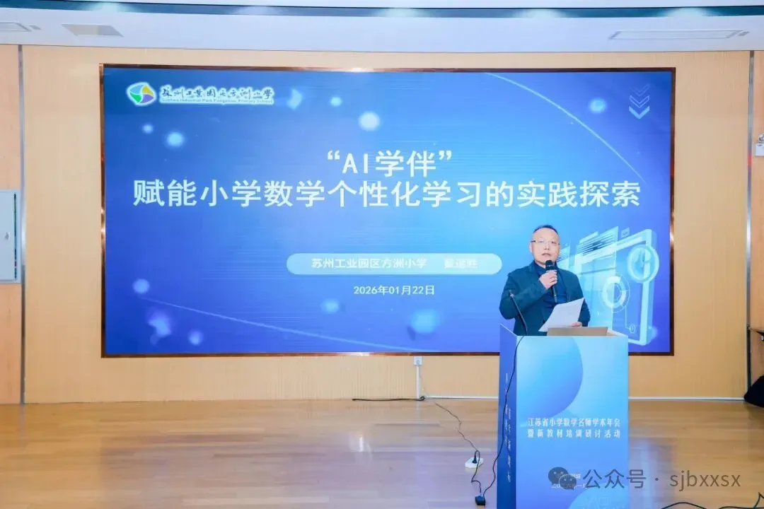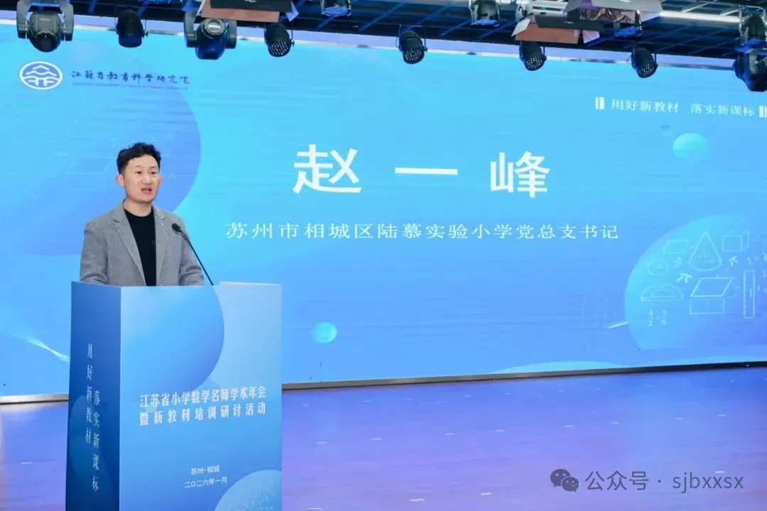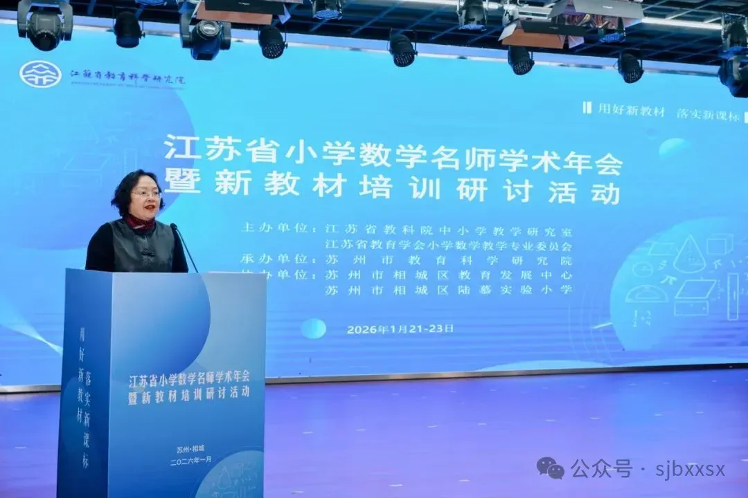 2026年1月21日至23日,由江苏省教科院中小学教学研究室、江苏省教育学会小学数学教学专业委员会主办,苏州市教育科学研究院承办,苏州市相城区教育发展中心、苏州市相城区陆慕实验小学协办的“江苏省小学数学名师学术年会暨新教材培训研讨活动”在苏州市相城区陆慕实验小学隆重举行。本次活动聚焦新教材实施与AI赋能教学,通过课堂观摩、主题论坛、专家报告等多种形式,汇聚全省小学数学教育精英,共研教学改革新路径,共绘小学数学教育新图景。