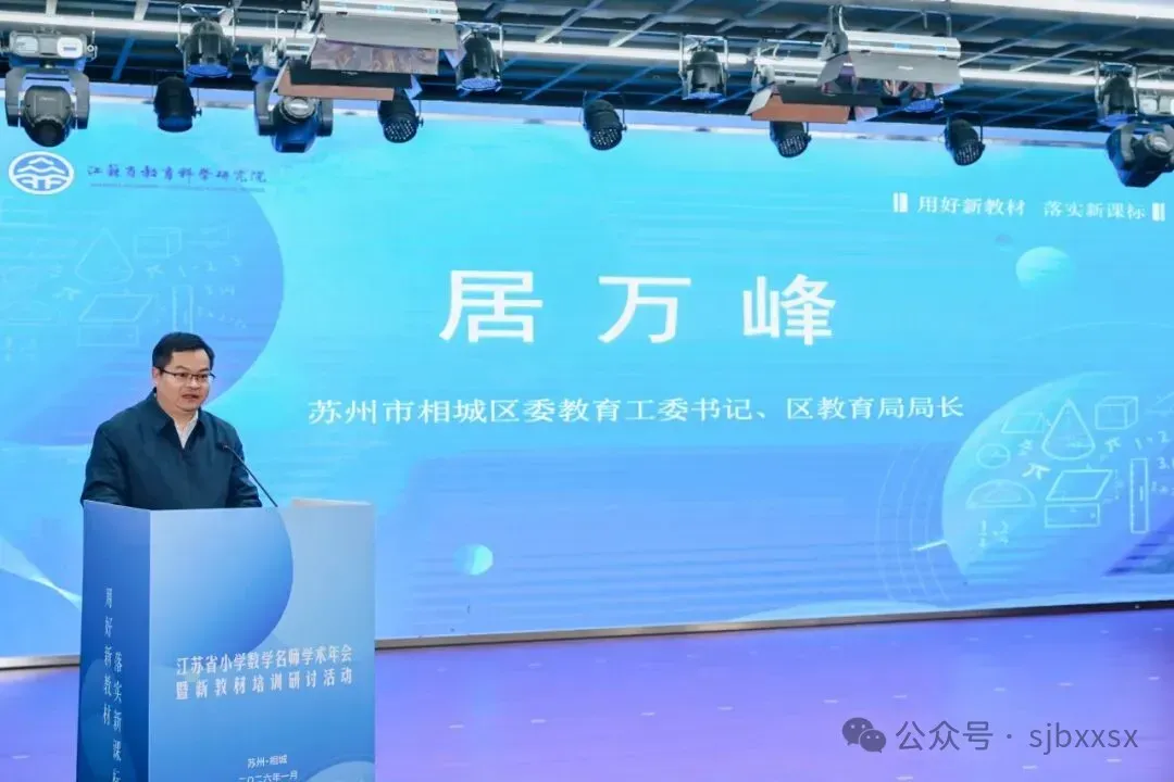苏州市相城区教育局居万峰局长在致辞中指出,落实新课标、用好新教材是当前深化课程改革的核心任务。他强调“真学习、真教育”的重要性,并表示相城教育的持续改革发展离不开全省各位名师、专家的智慧引领与宝贵意见,期待本次活动能碰撞出更多促进区域教育高质量发展的火花。