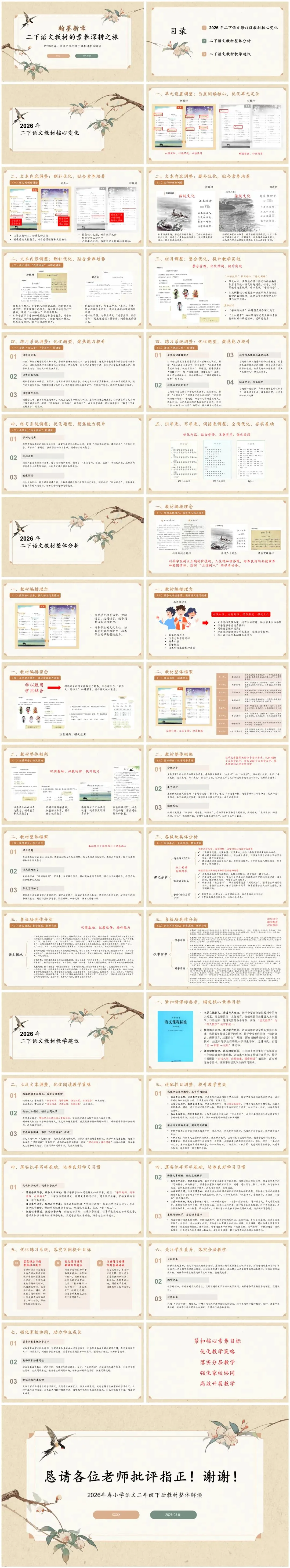 >2026春季小学语文二年级下册教材整体解读分析PPT+稿子