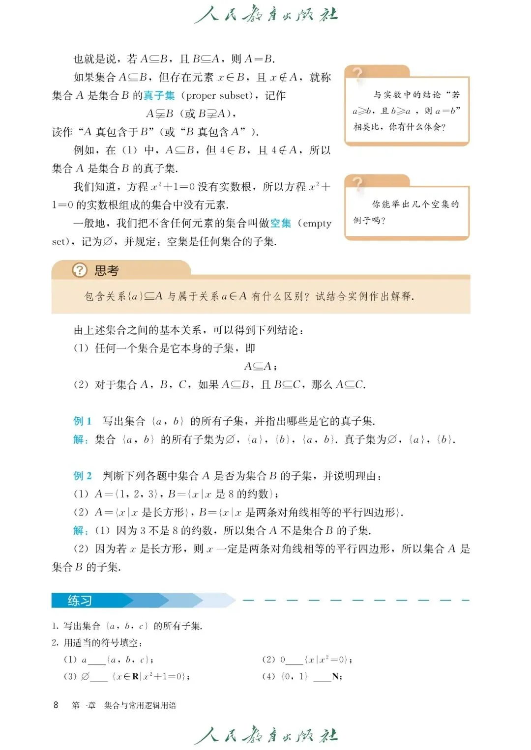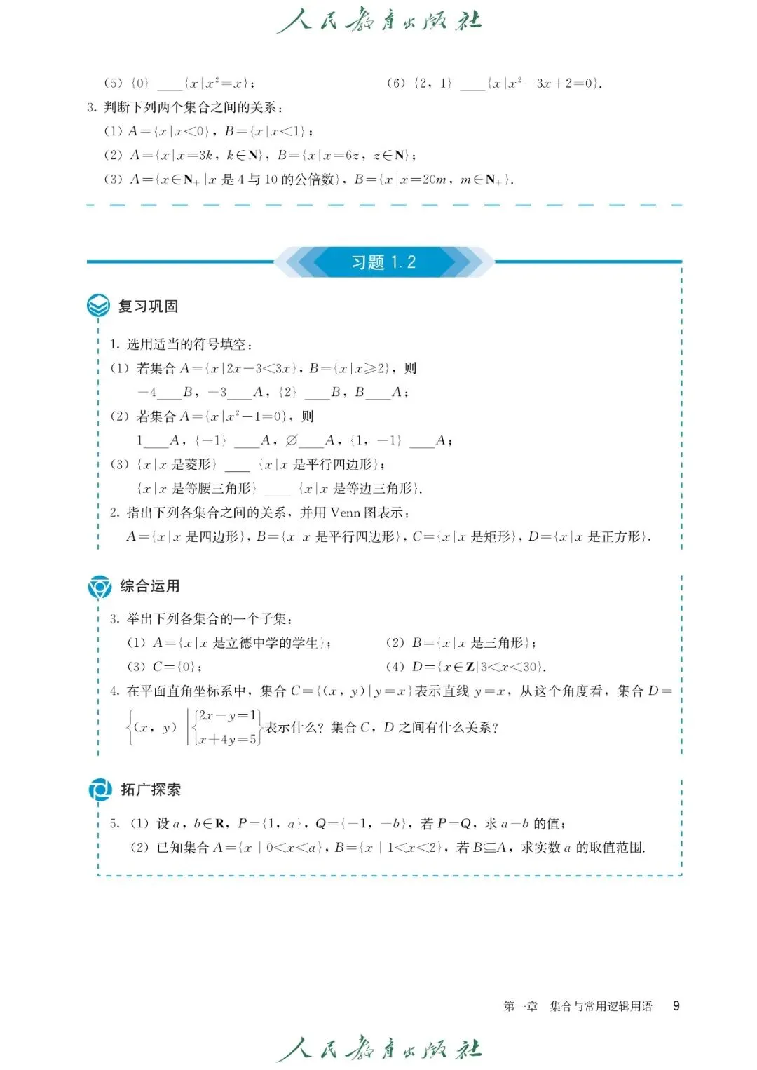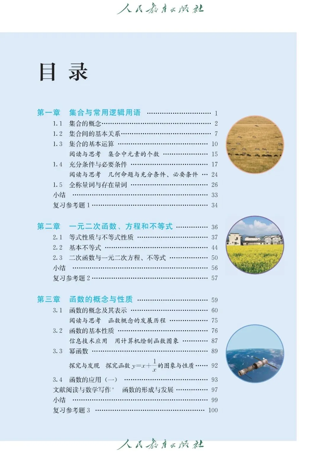 【1】第一章 集合与常用逻辑用语:主要内容包含集合的概念、元素与集合的关系、集合的表示方法(列举法、描述法),集合间的基本关系(子集、真子集、相等),集合的基本运算(并集、交集、补集),充分条件与必要条件的判定,全称量词与存在量词的含义及否定