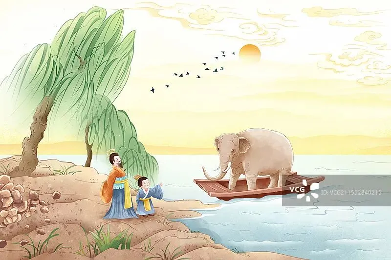 大家定睛一看,原来是曹冲,曹操的儿子,这孩子打小就非常聪明。