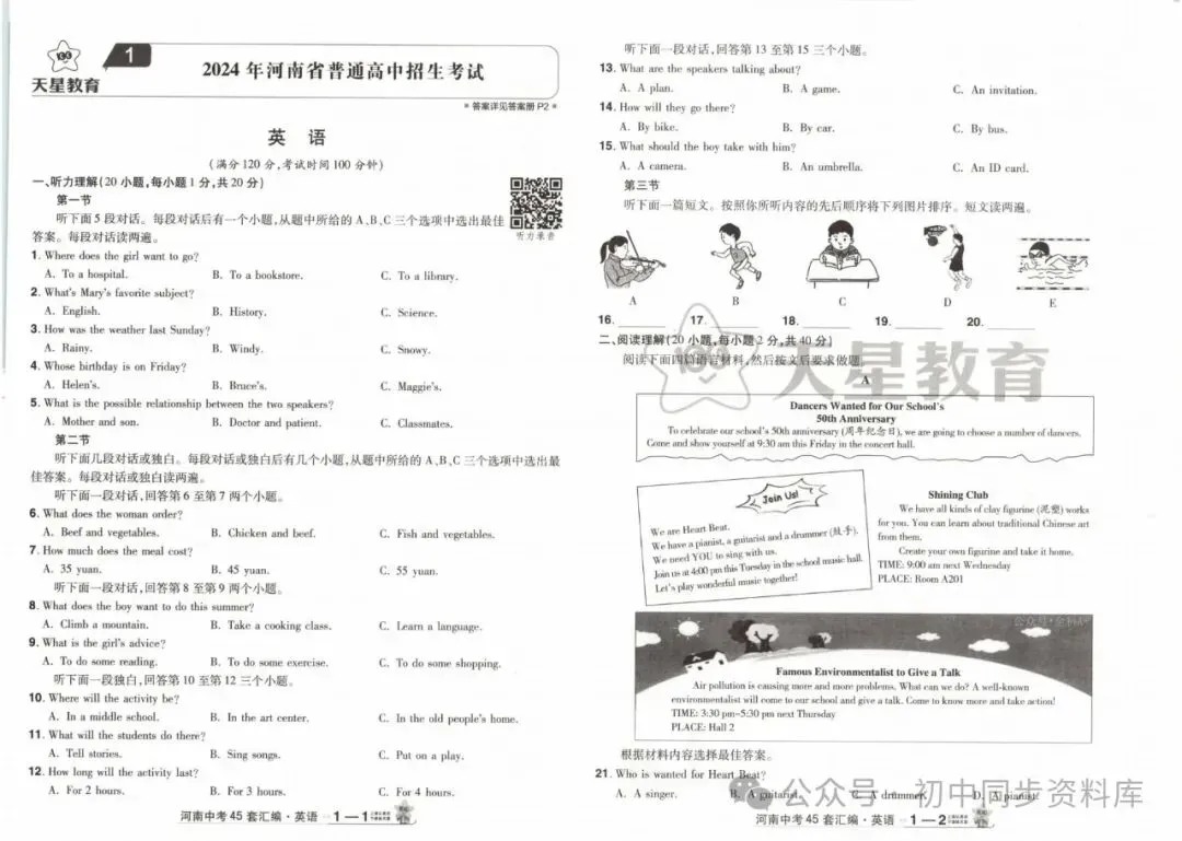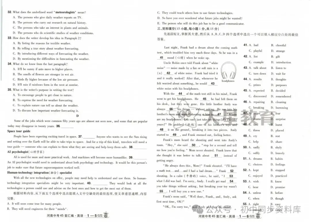 2025新教材| 初中语文&英语中考《河南中考45套•中考试卷汇编》PDF