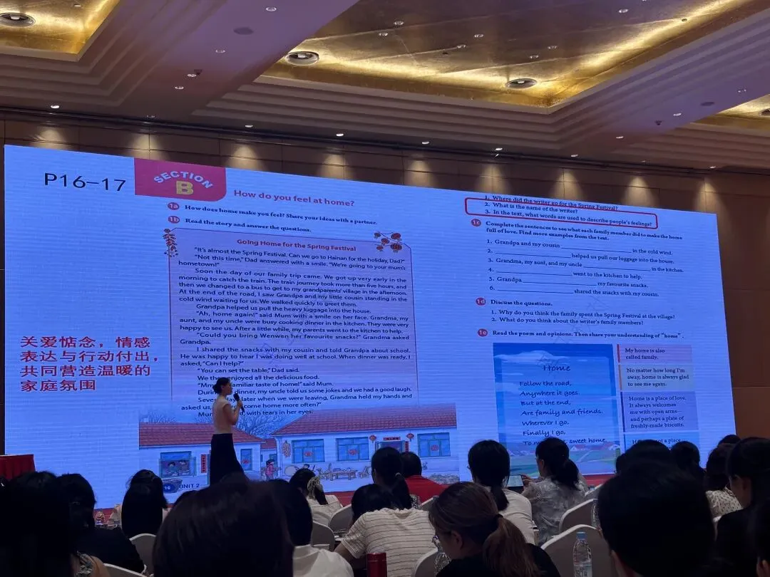 马老师以Unit 2为例的单元内容解析,为语篇教学提供了实操范例。从语篇类型看,八年级上册各单元涵盖对话、记叙文、科普短文等多样形式,不同语篇有不同的结构和语言特点。在教学中,需要引导学生识别语篇类型,分析其组织架构,马老师带领我们阅读Unit 2记叙文时,邀请老师回答了课文问题,并且详细地提炼出了文中的动词、形容词及细节描写,理解情节背后的情感与文化内涵,这也是我们在教学过程中需要向学生们阐述的重点。