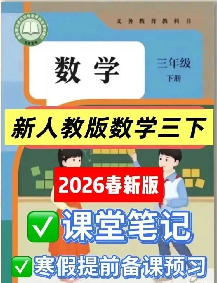 当前位置:首页>小学教材>【2026春】新教材小学三年级下册人教版数学电子课本+课件PPT+核心素养教案+课堂笔记