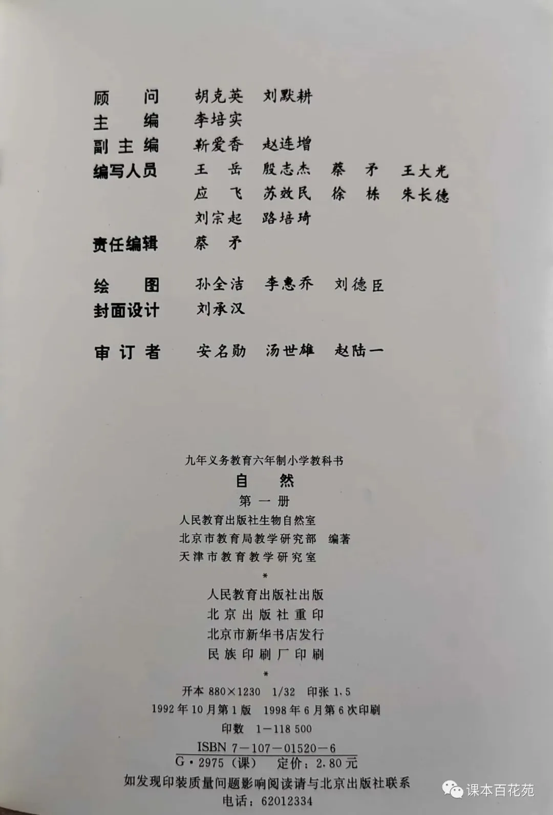 怀旧老教材|九年义务教育六年制小学教科书自然·第一册(1996版)