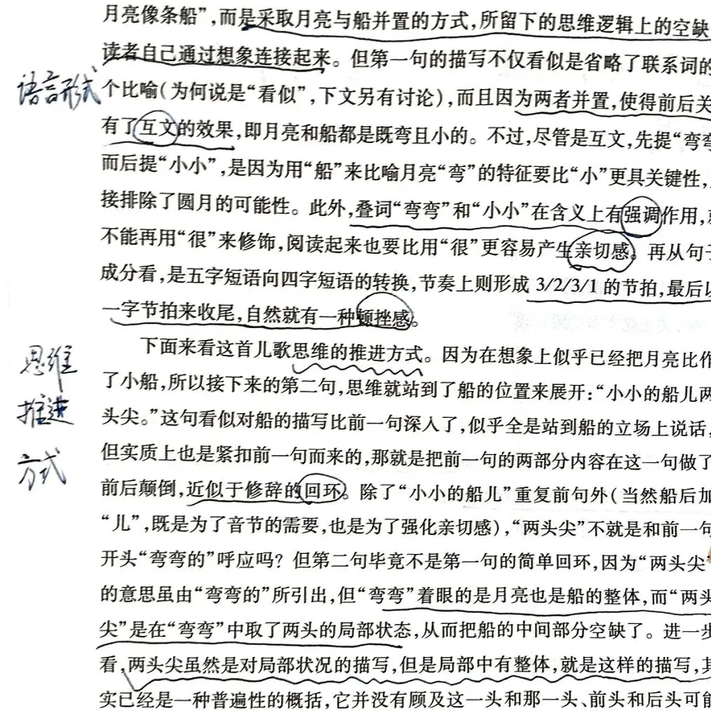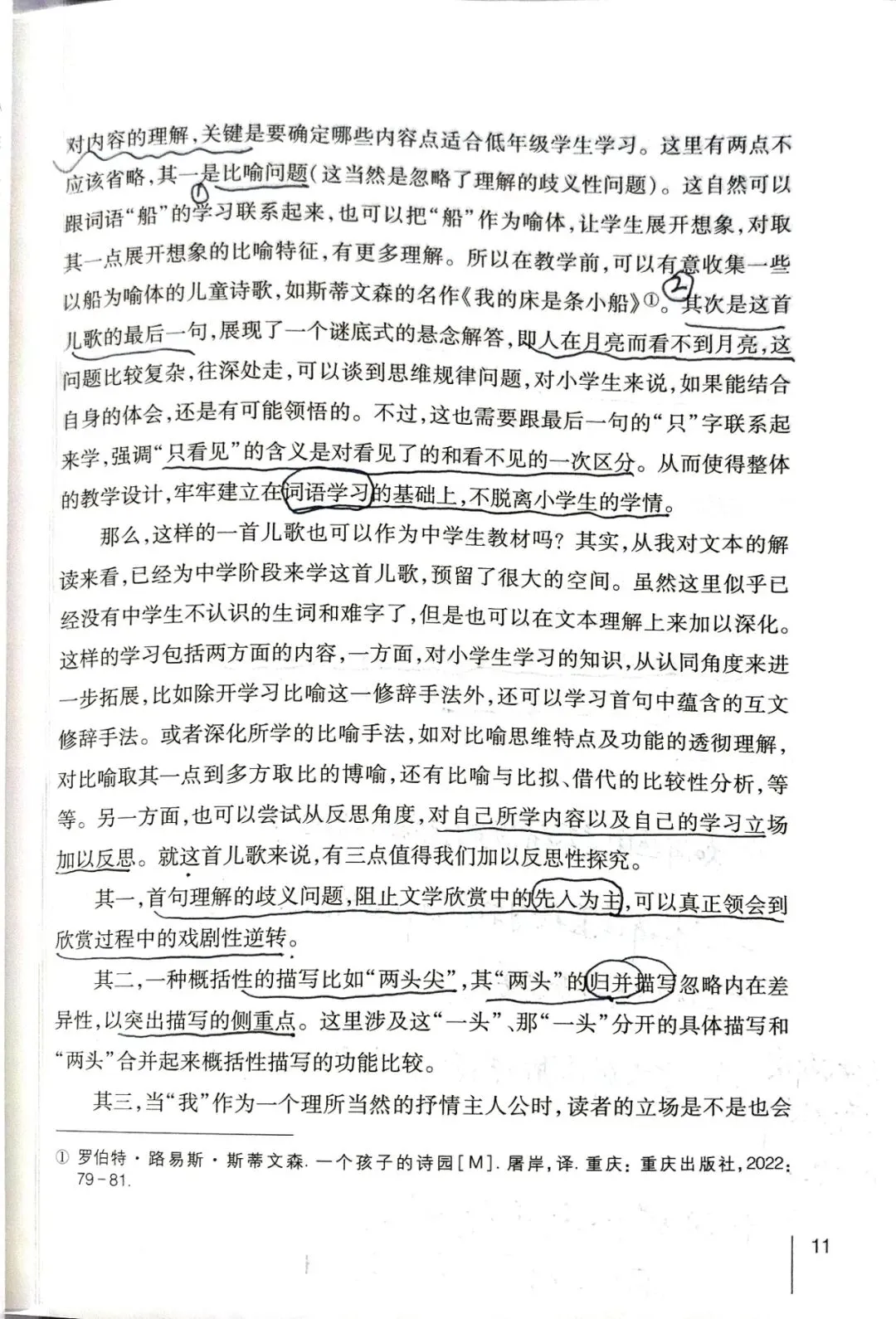 例如对《咏鹅》的解读,可关注物所处的特定情境这一外部关联,在比较中注意到物自身的内部有机联系。又如,《小小的船》中从关注字词在文本中的语境义,乃至进一步思考字词对语境本身的意义。这些都是有意识地从局部迈向整体、从整体反观局部的文本解读方法。