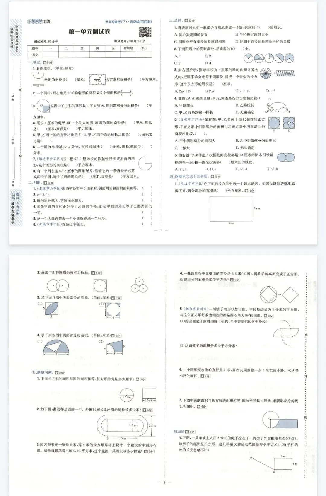薛金星小学教材全练测试卷-青岛54制数学2-5年级下册