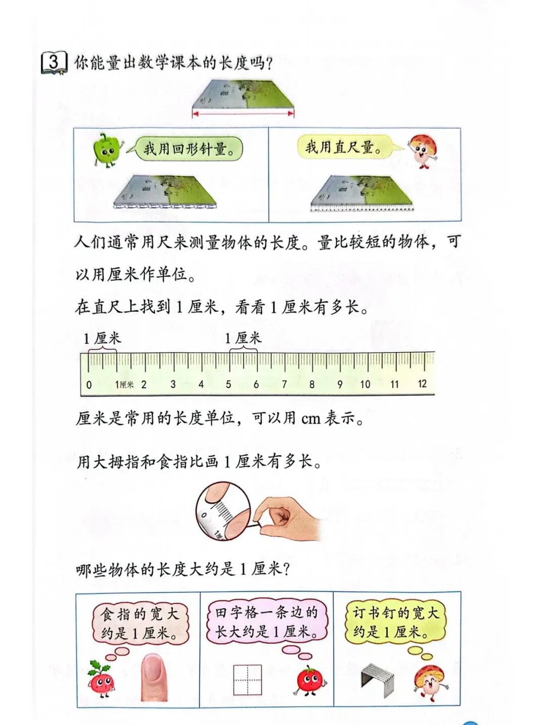 内容深度拓展:提前融入原中年级知识,如“倍的认识”“整十数乘除运算”;《厘米和米》新增小数单位换算,《数据分类》补充二次分类知识点;首次引入加减法竖式教学。