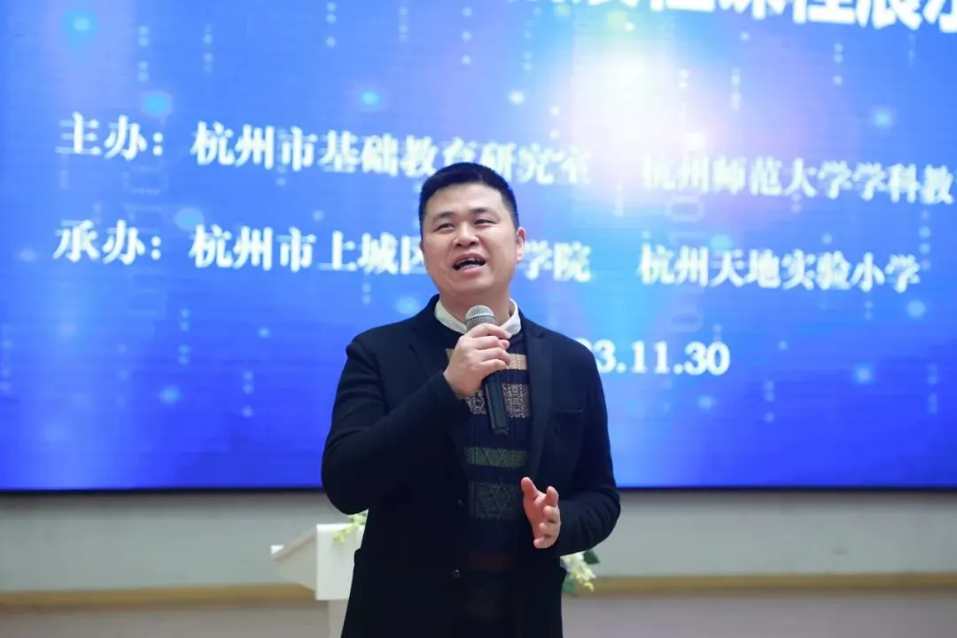 杭州市基础教育研究室主任杨凯锋先生强调双减背景下小学科学立足教材,加强科学思维和实践的重要性,并殷切期望杭州市小学科学教育能够越来越好,走向学科本质,走向育人目标。