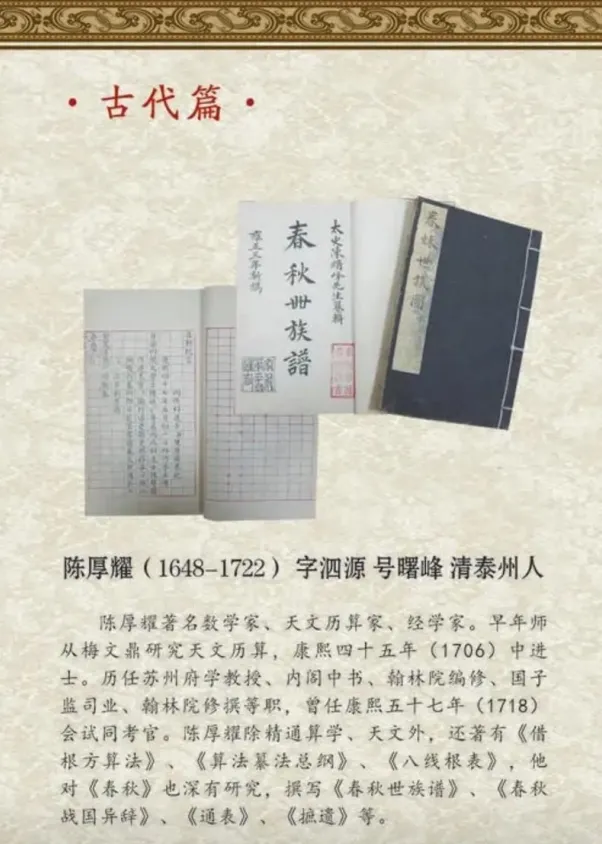 陈厚耀生活在清代康熙年间,那是一个重视学术、鼓励实学的时代。他从小就勤奋好学,不仅精通四书五经,还对数学、天文、地理有着浓厚的兴趣。成年后,他凭借渊博的学识入朝为官,还曾担任康熙皇帝的数学老师,经常和康熙一起讨论天文历法中的数学问题。 在陈厚耀之前,中国古代虽然已经有了球面三角的初步知识,比如《周髀算经》中就有相关记载,但这些知识比较零散,计算方法也不够系统,普通人很难掌握。当时的天文学家和航海家在使用时,常常因为公式不统一、计算步骤繁琐而出错。陈厚耀发现:“数学的价值在于实用,如果知识零散难懂,就算再深奥也没有意义。” 于是,他立志要把球面三角学整理得清晰、易懂、好用。为了实现这个目标,陈厚耀做了大量的工作:他首先深入研究《周髀算经》《九章算术》等古代算学名著,梳理其中关于球面三角的零散记载;然后,他又借鉴了西方传入的相关知识,取长补短,对原有公式进行验证和补充;更重要的是,他结合中国古人的使用习惯,简化了复杂的运算步骤,还编制了详细的计算表格 —— 就像我们今天用的 “乘法口诀表” 一样,使用者不用一步步复杂演算,对照表格就能快速查出结果。