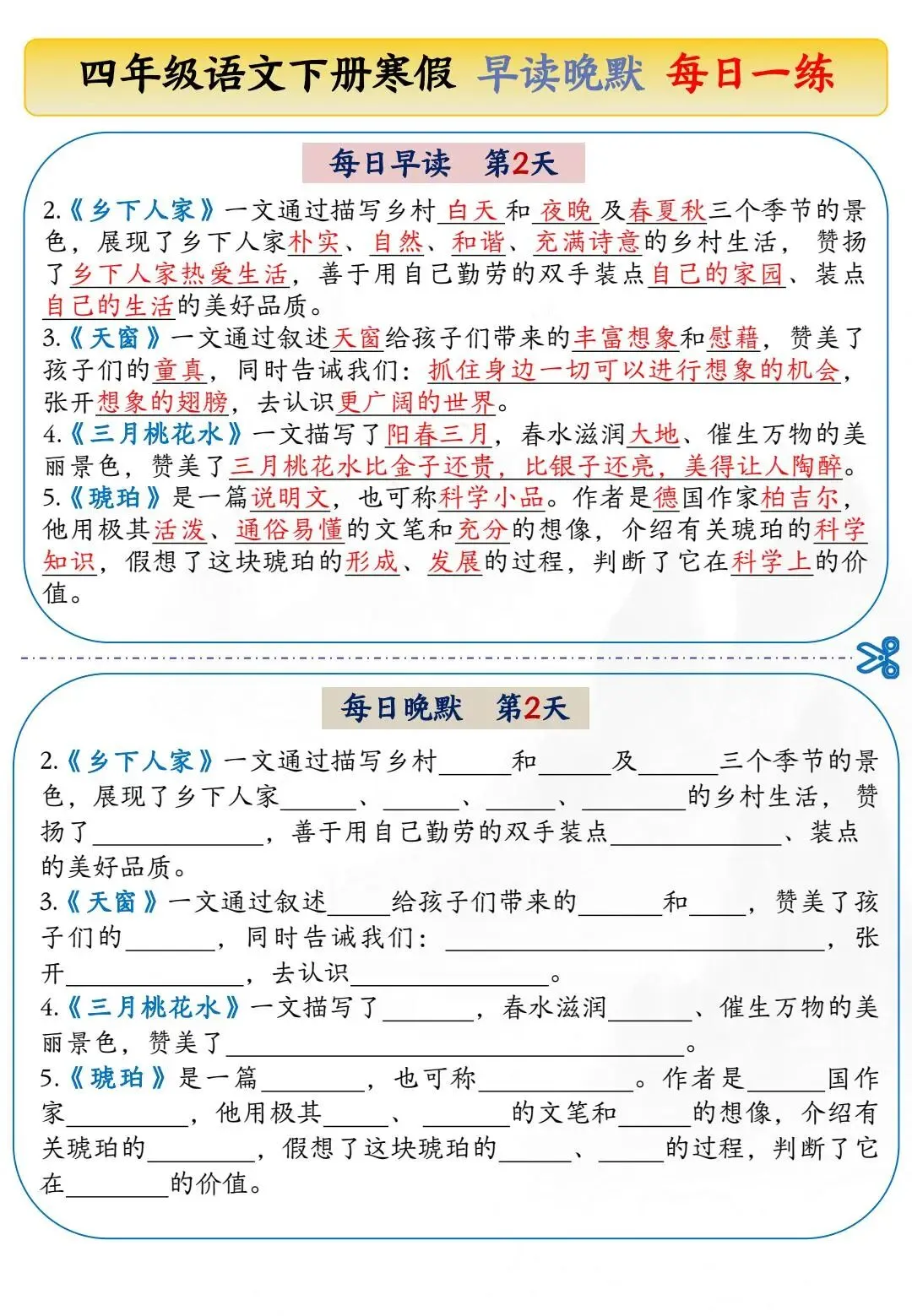 #2026 春人教版四年级上册语文 #四年级语文寒假早读晚默 #四上语文每日一练 #彩色高清 PDF 可打印 #2026 春新版语文练习 #四年级上册语文寒假预习 #小学语文早读晚默资料 #人教版四年级语文练习册 #可打印语文寒假作业 #四年级语文寒假打卡 #小学语文高清练习 PDF #2026 春语文寒假资料 #四年级上册语文 PDF #人教版语文寒假电子版 #小学中年级语文寒假练习