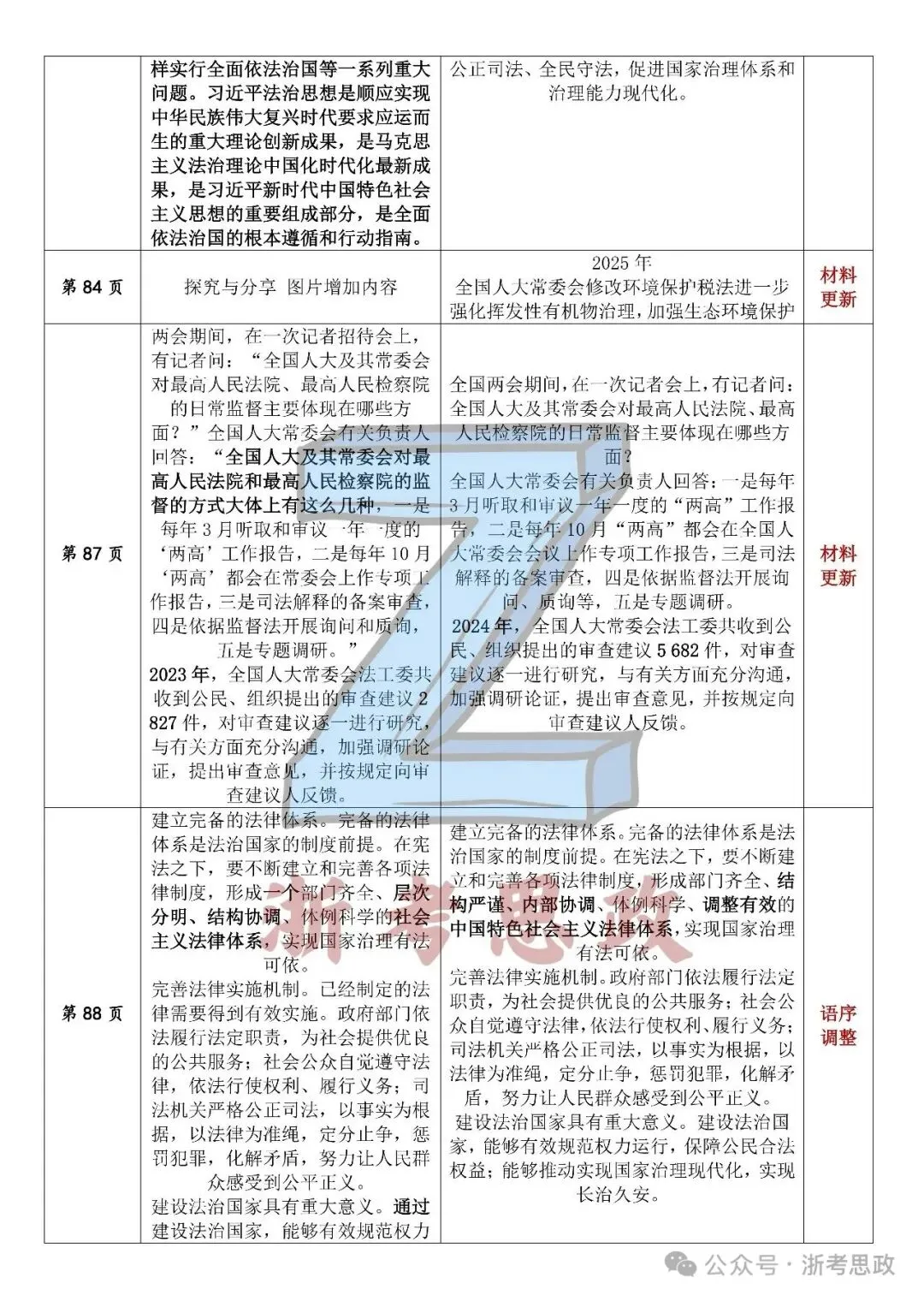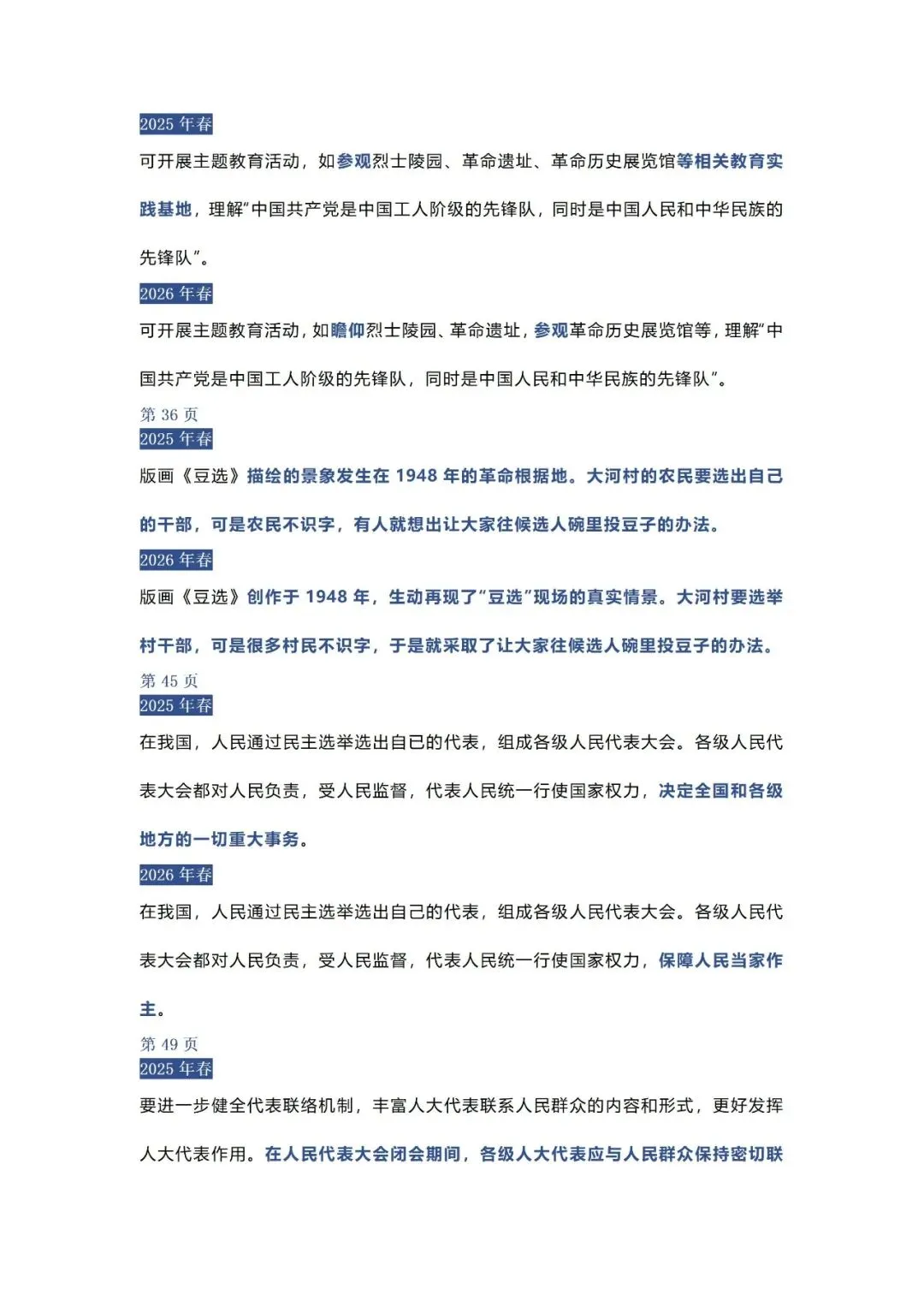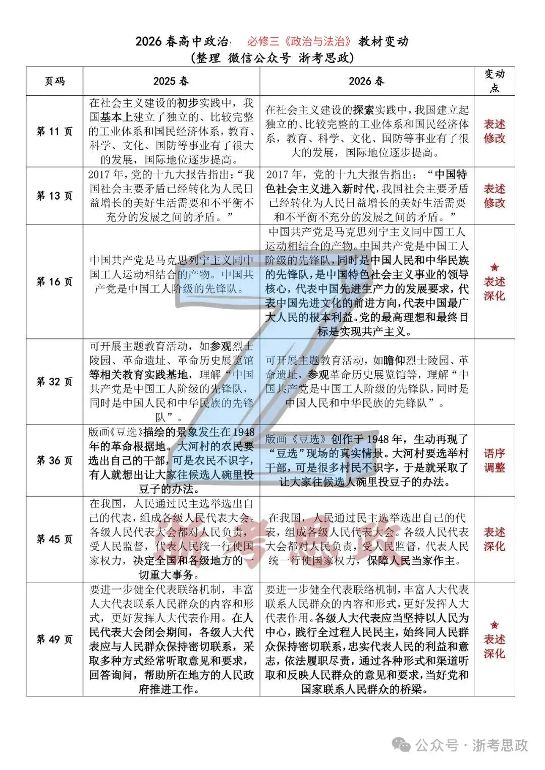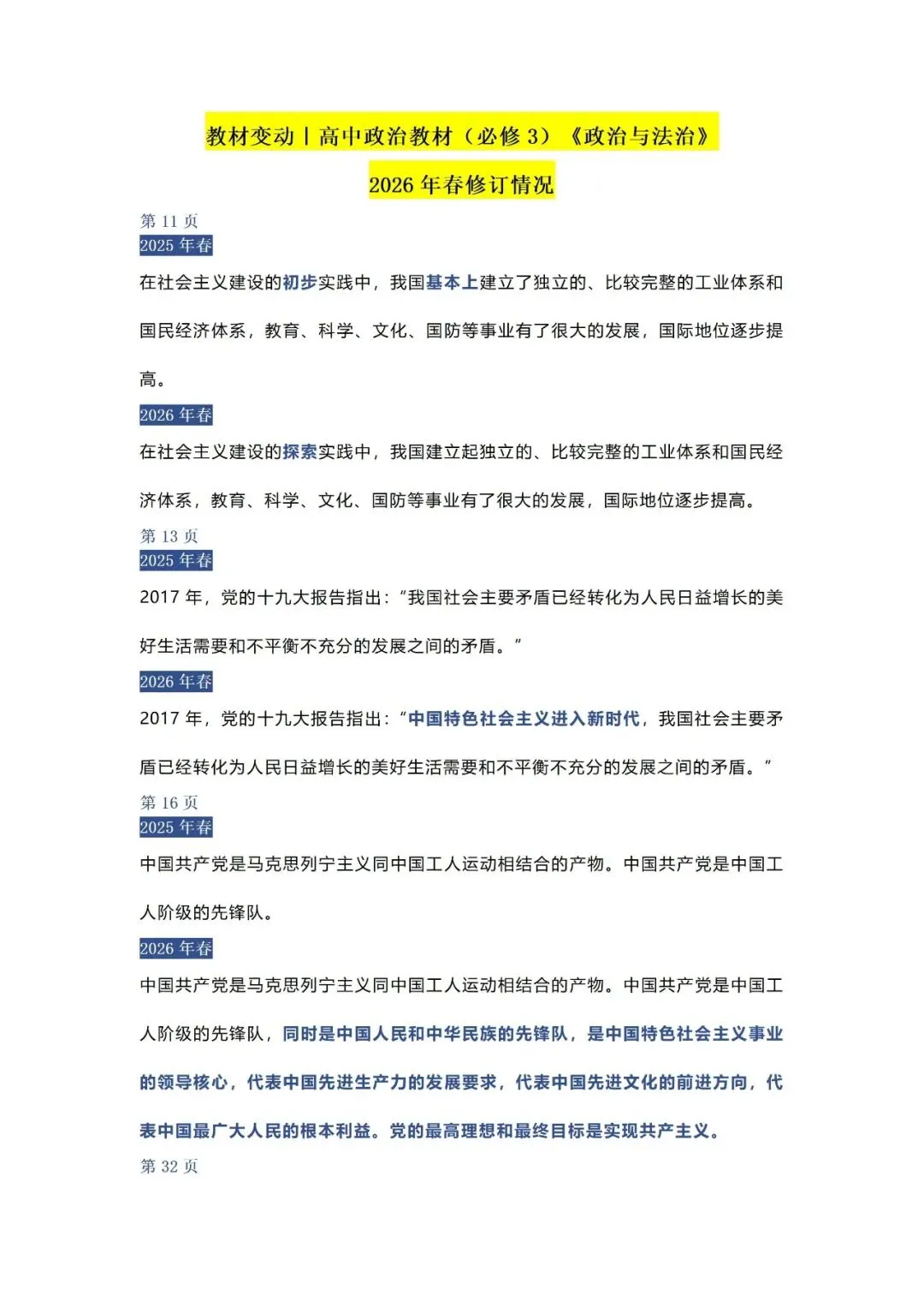 26年春季高中政治教材变动对比